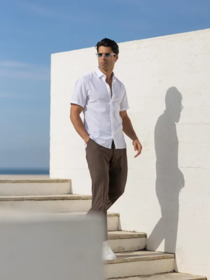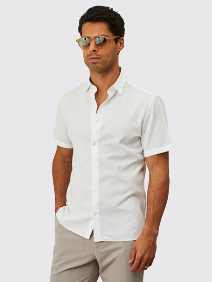CAMISA DE LINHO MANGA CURTA GOLA ITALIANA BRANCA ZOLF