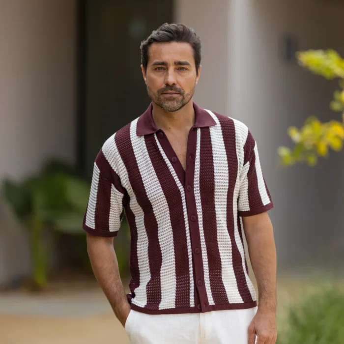 CAMISEIRO PONTO CROCHÊ COM RISCA BORGONHA ZOLF