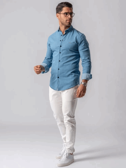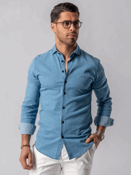 CAMISA GOLA ITALIANA SLIM FIT DENIM ZOLF