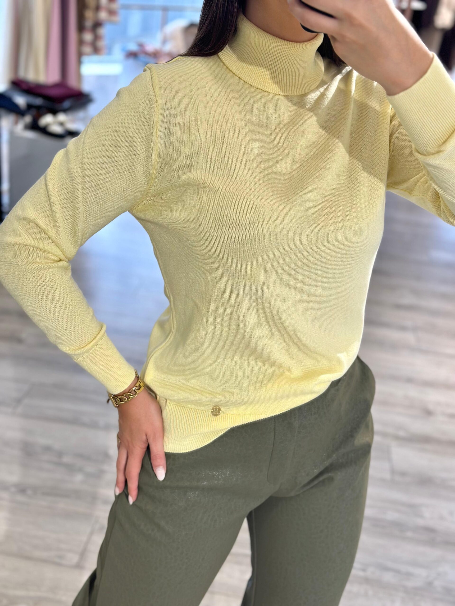 CAMISOLA AMARELO MANTEIGA COM GOLA ALTA RUGA