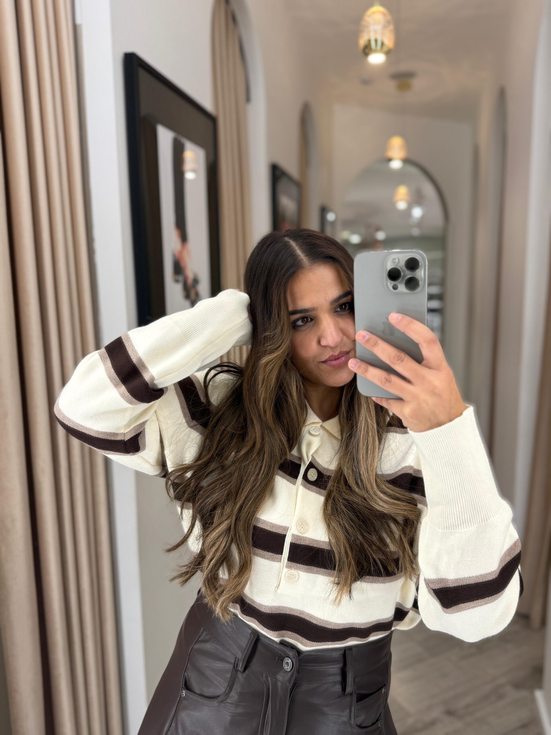 CAMISOLA ÀS RISCAS CASTANHA E BEGE PONTO CHIC