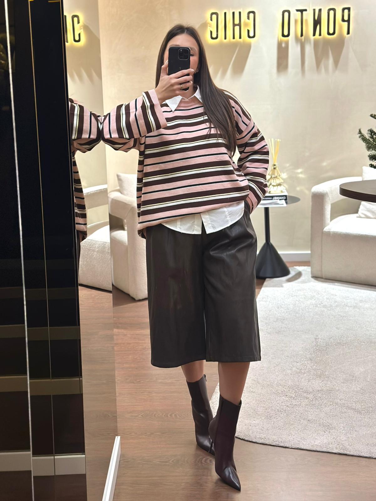 CAMISOLA ÀS RISCAS ROSA E CASTANHA PONTO CHIC