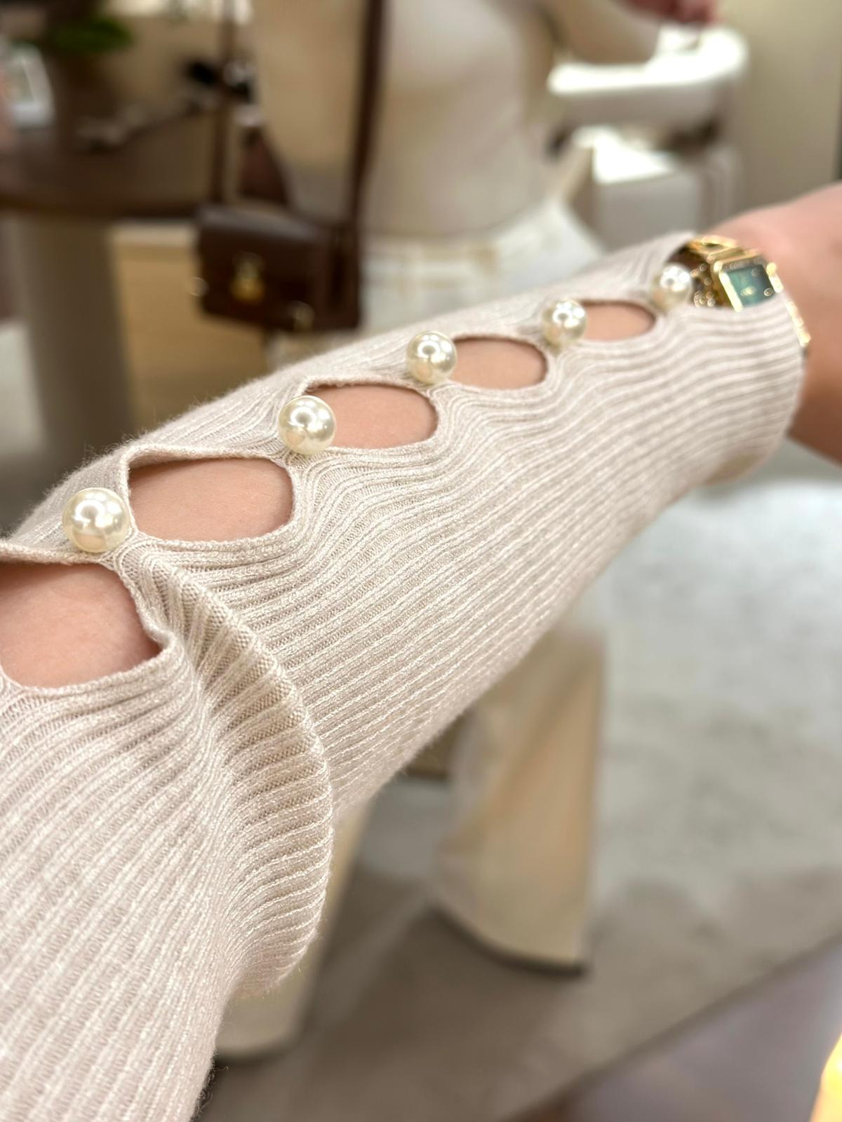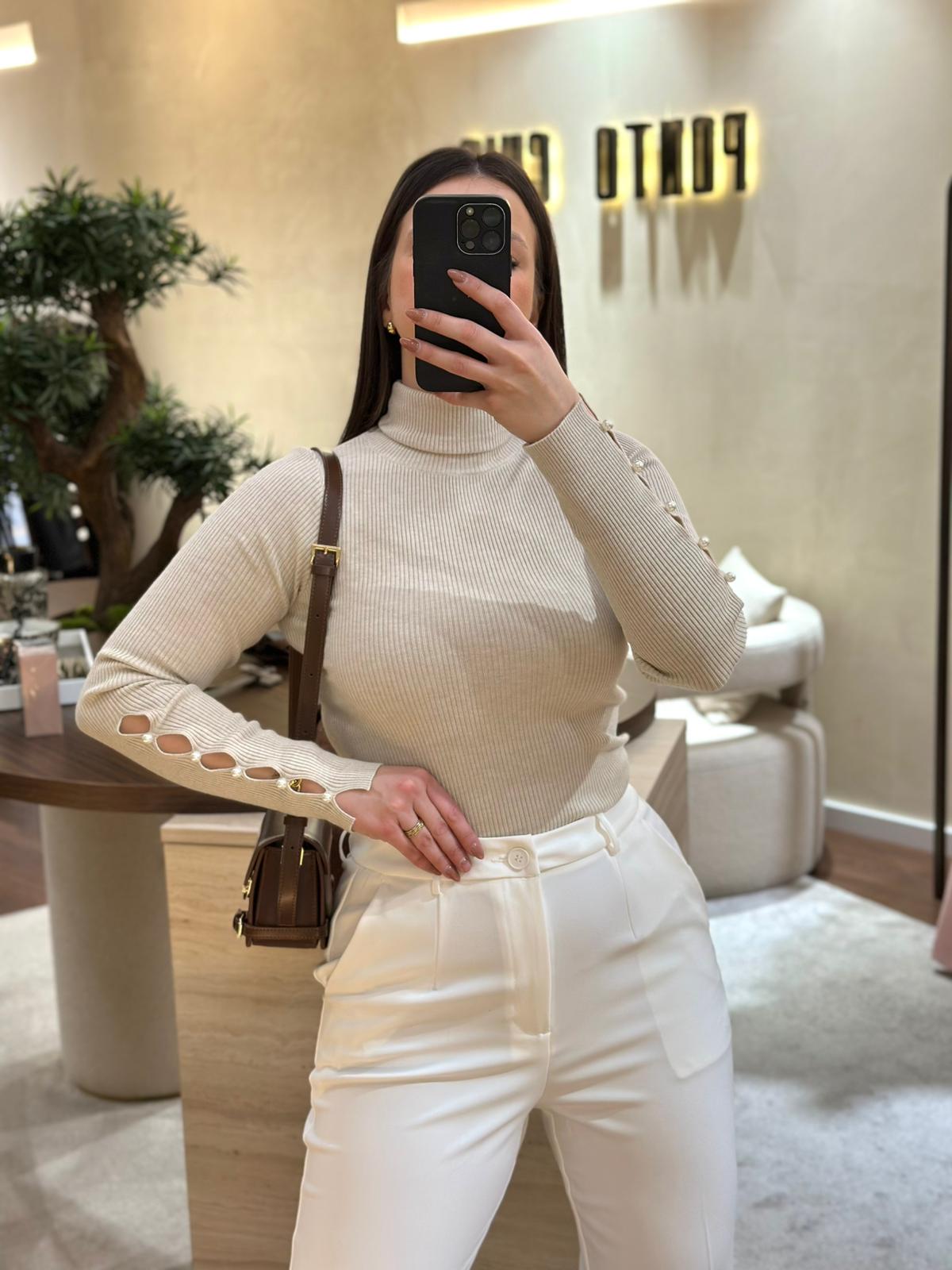 CAMISOLA CANELADA COM GOLA ALTA E DETALHE NAS MANGAS PONTO CHIC