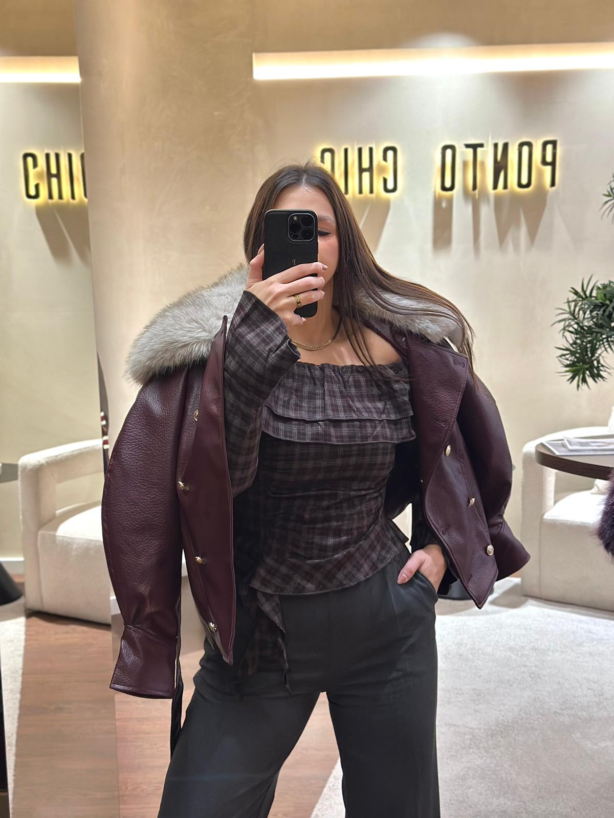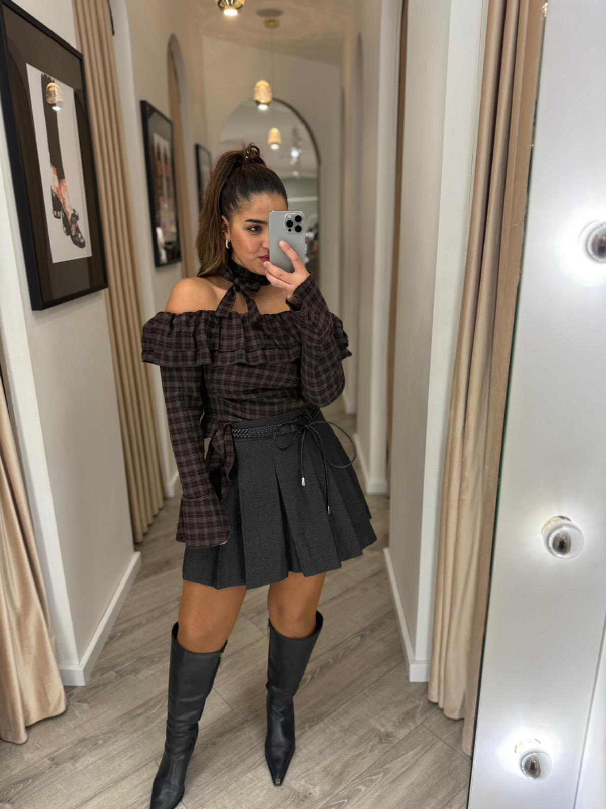 CAMISOLA CASTANHA COM PADRÃO XADREZ PONTO CHIC