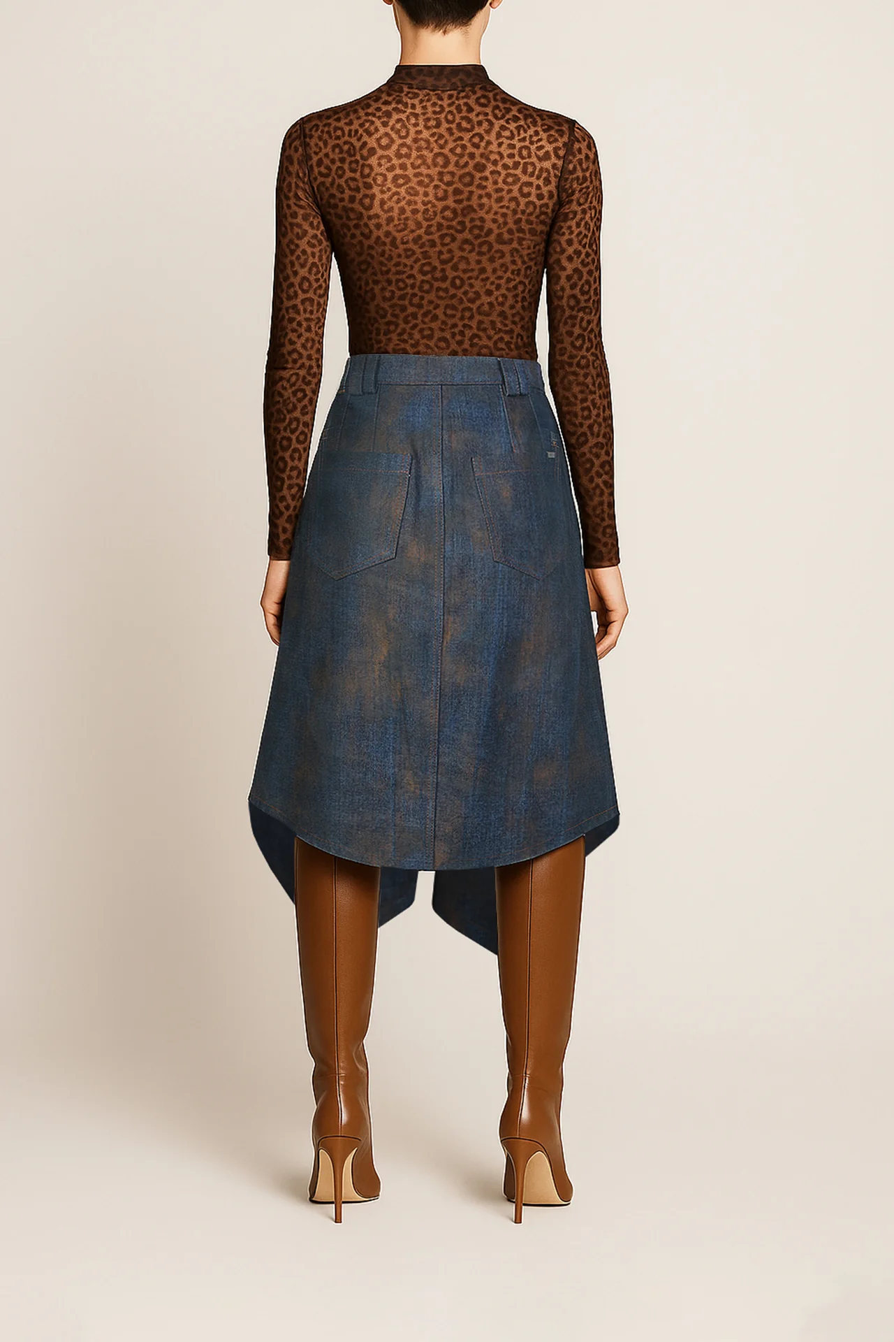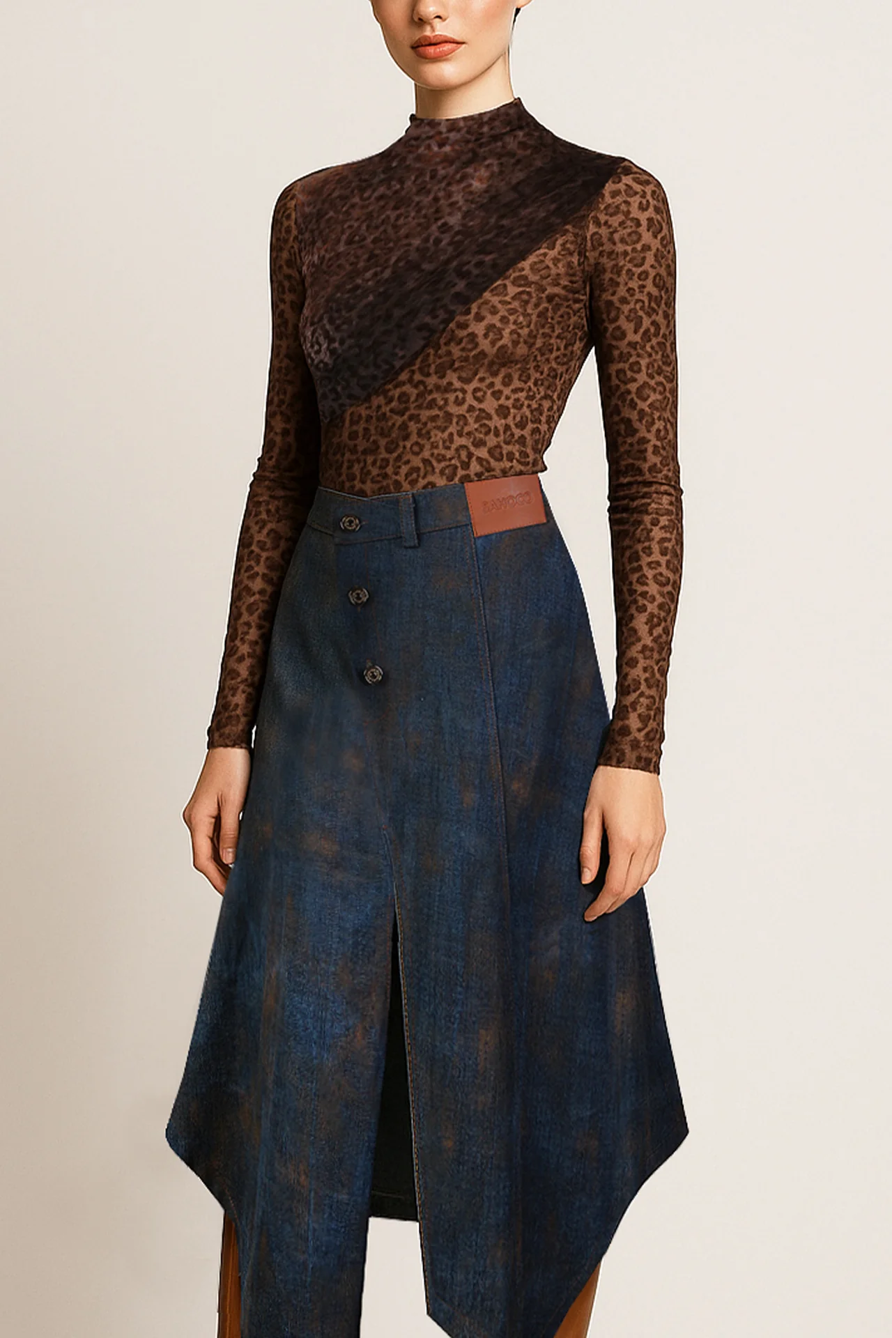 O padrão animal em tons castanhos, aliado ao drapeado frontal e às mangas compridas, confere um visual moderno e cheio de personalidade. O corte fluido com leve transparência torna a peça subtilmente arrojada, ideal para quem gosta de looks femininos com atitude.