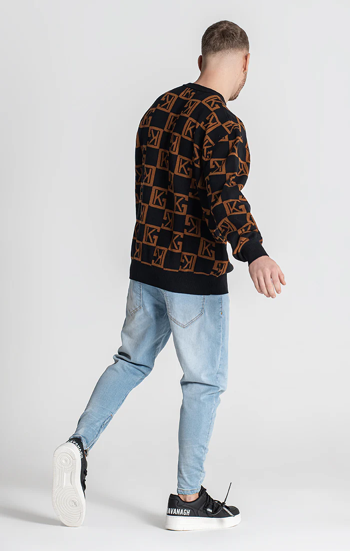 A camisola castanha da Gianni Kavanagh combina conforto premium com o estilo urbano característico da marca. Confeccionada em 100% algodão, apresenta um design moderno em padrão geométrico com o icónico logótipo “GK” em destaque, conferindo-lhe uma aparência arrojada e sofisticada.