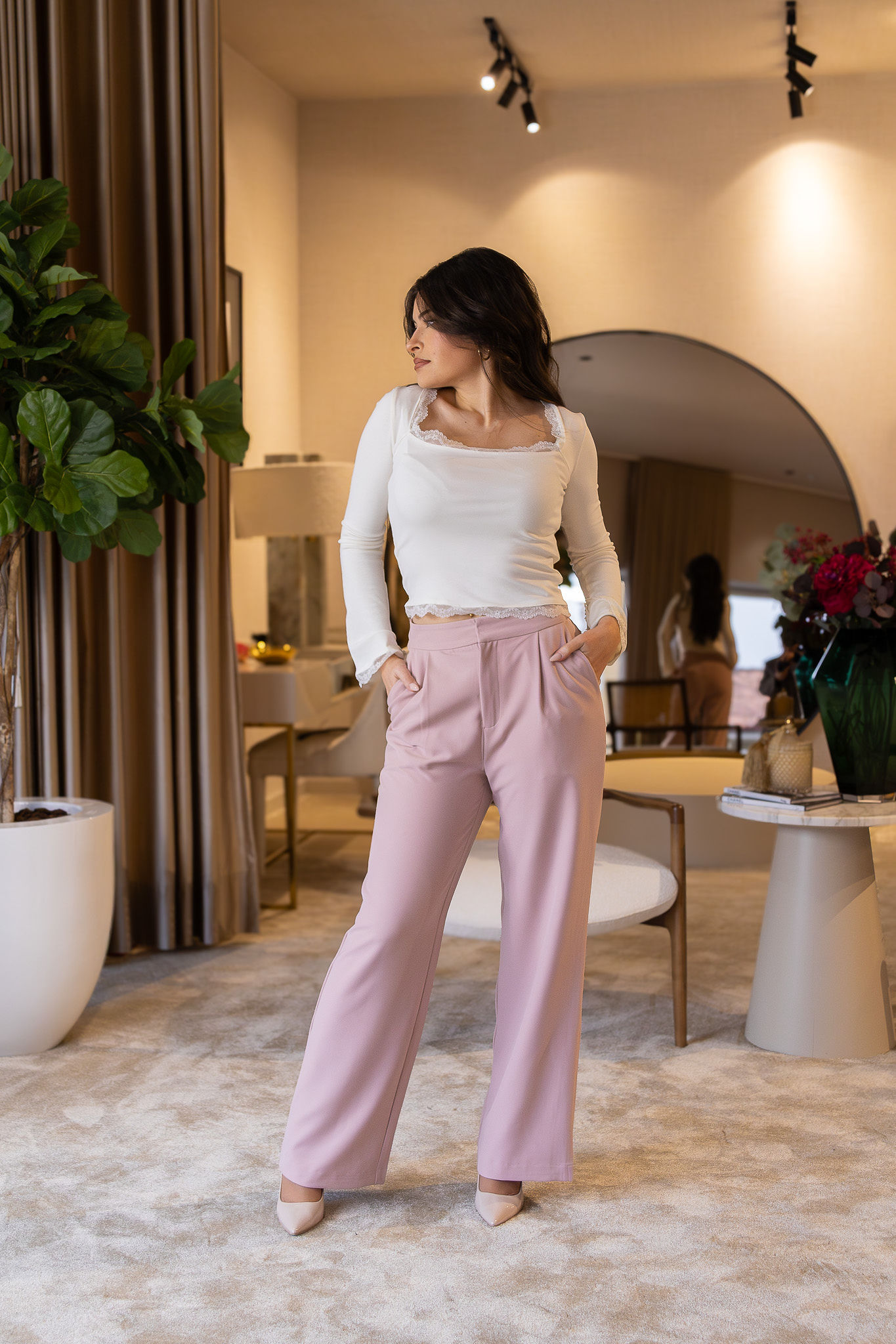 Uma peça versátil, intemporal e elegante, perfeita para conjugar com jeans, calças de alfaiataria, saias ou conjuntos mais sofisticados, adaptando-se facilmente tanto a looks casuais chic como a produções mais elegantes.
