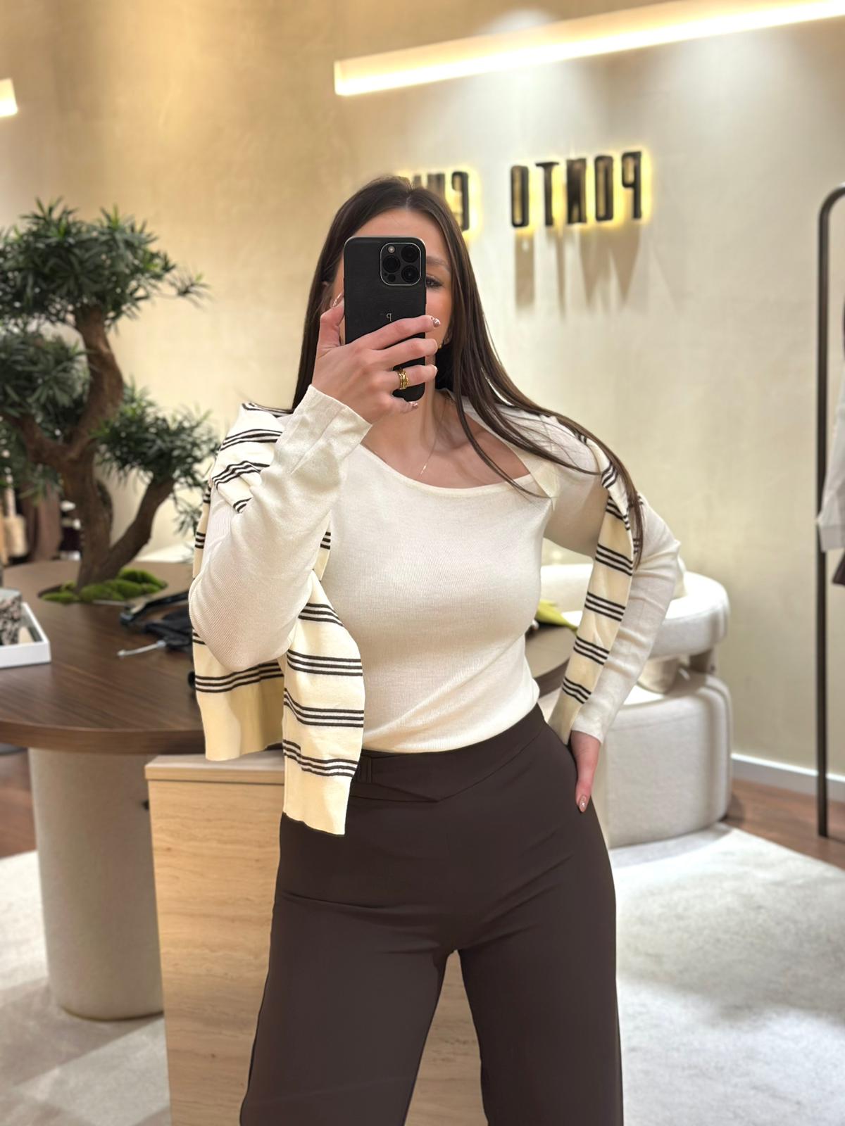 Fácil de conjugar, esta camisola de malha cru adapta-se a múltiplos estilos, combinando na perfeição com jeans, calças de alfaiataria ou saias. Uma peça essencial para looks casuais ou mais cuidados, pensada para quem valoriza conforto, sofisticação discreta e qualidade, com a assinatura da Ponto Chic.
