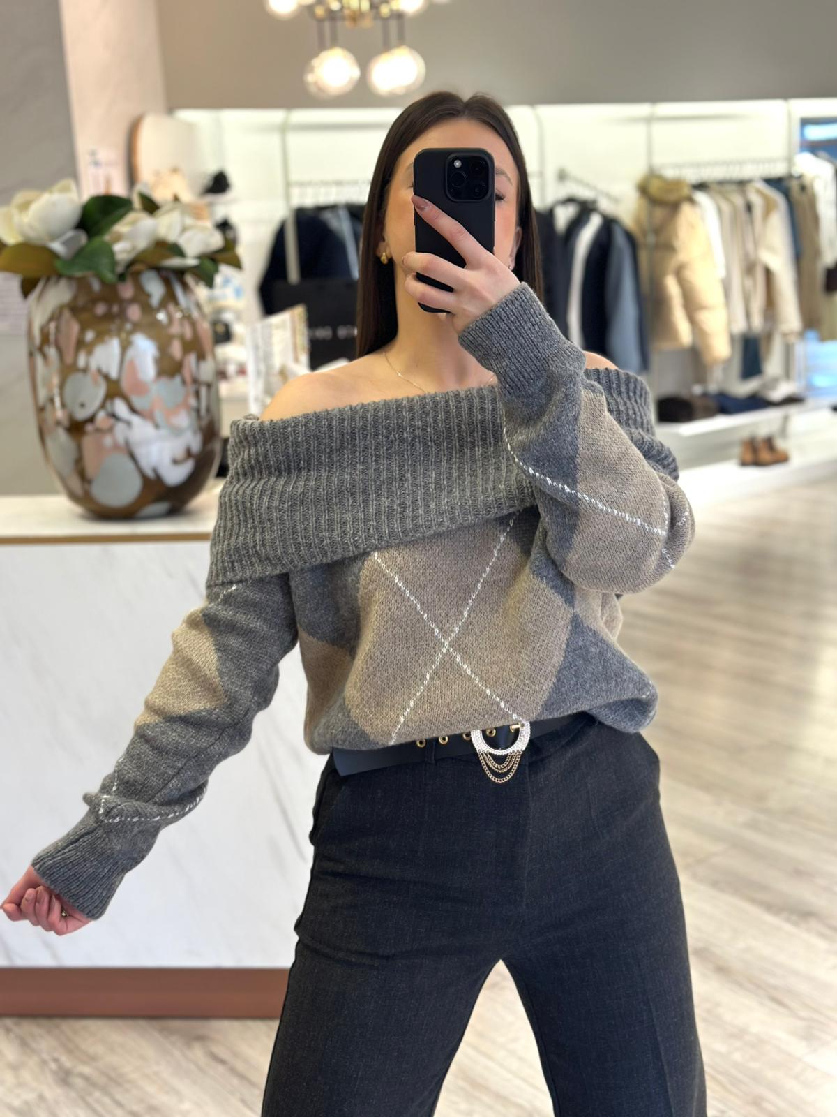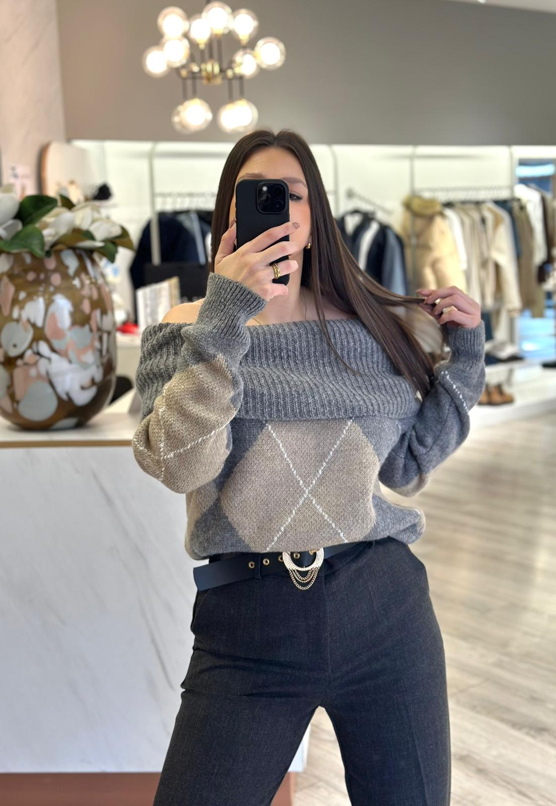 CAMISOLA DE MALHA PADRÃO LOSANGOS CINZA PONTO CHIC