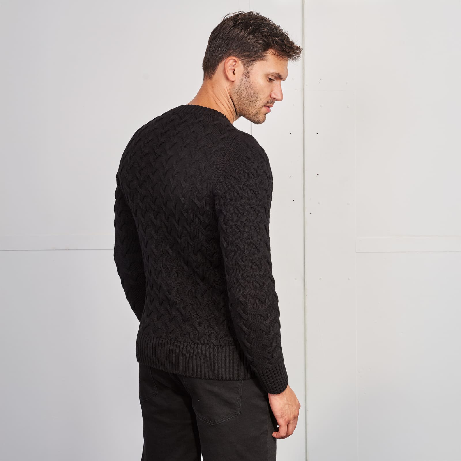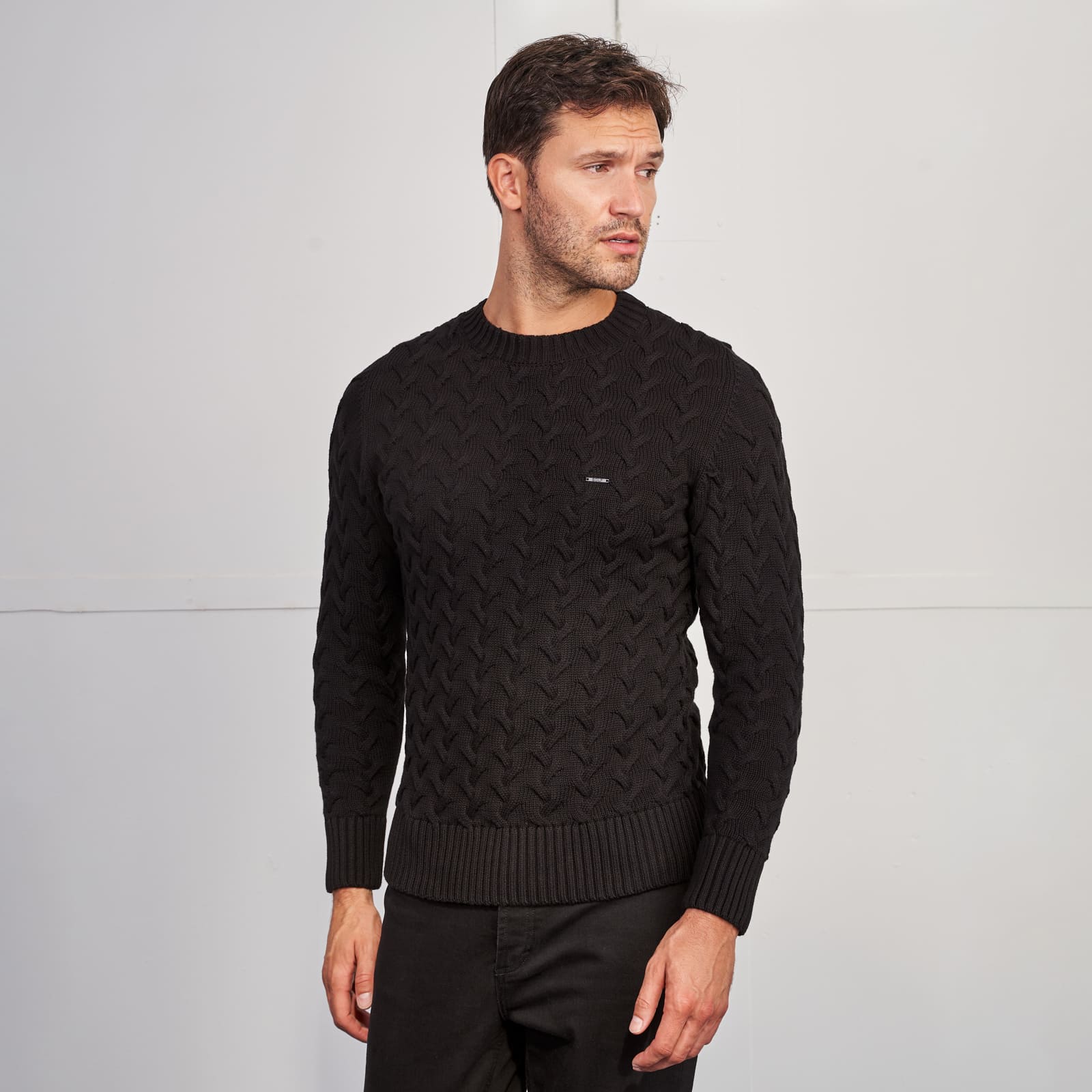 A camisola de tricot preta da Zolf é um clássico moderno que combina conforto, qualidade e elegância discreta. Produzida em 100% algodão, apresenta uma textura suave e respirável, ideal para o dia a dia e perfeita para os dias frios da estação.