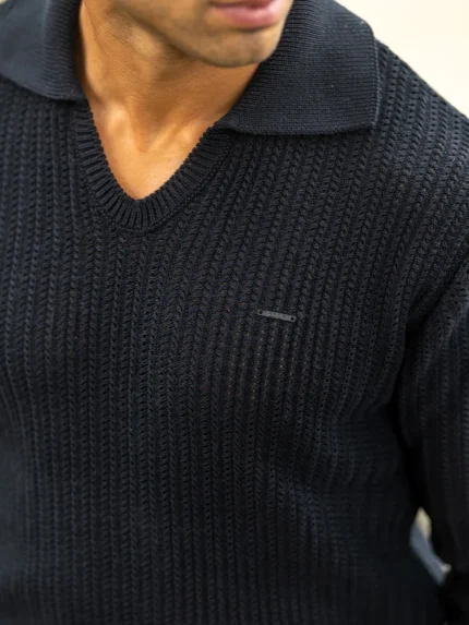 POLO PONTO CROCHE MANGA COMPRIDA PRETO ZOLF