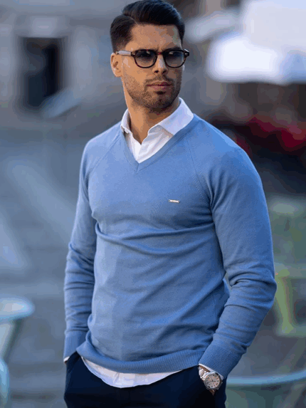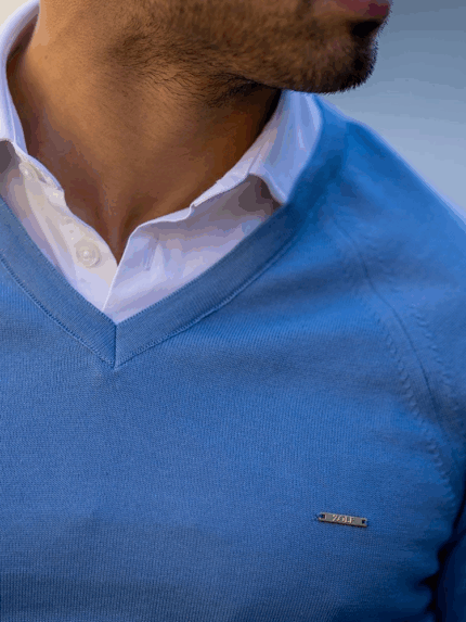 A camisola azul de decote em bico Zolf é a definição de elegância descontraída. Feita em 100% algodão e fabricada em Portugal, combina conforto superior com um acabamento impecável.