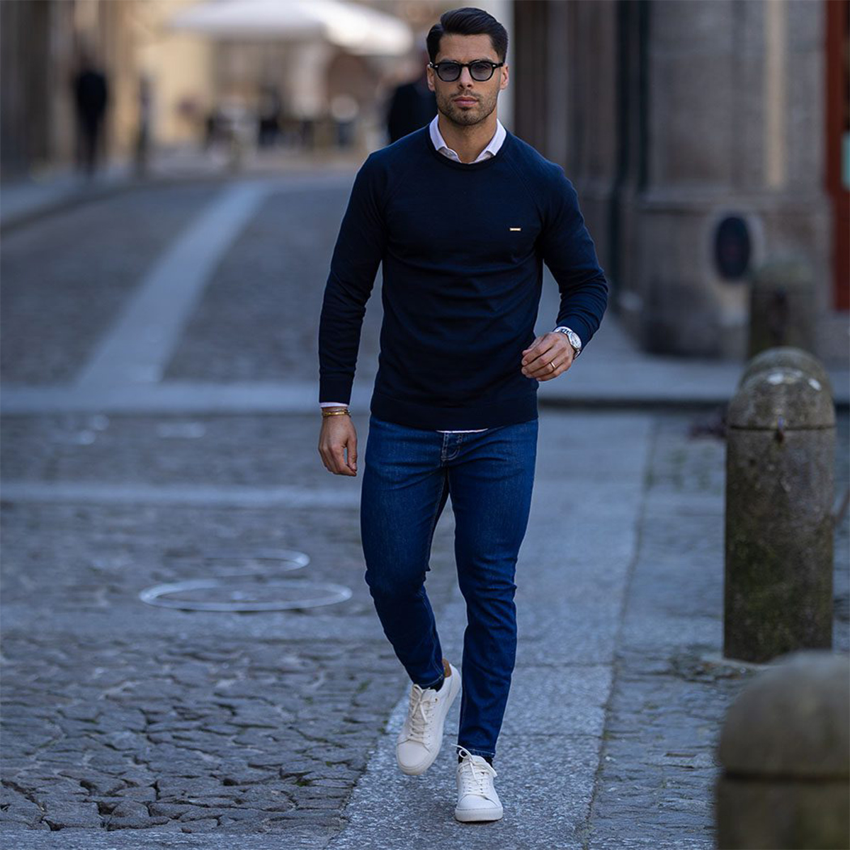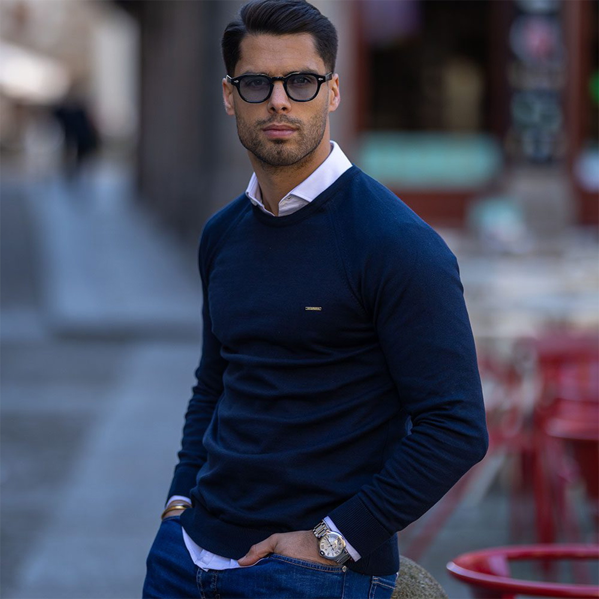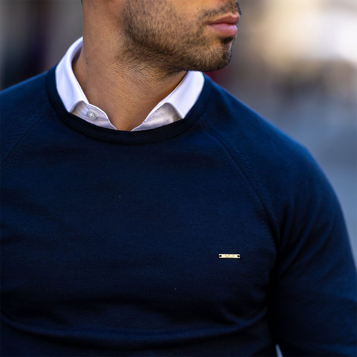 Camisola tricot com decote redondo. Fabricado em 100% algodão, este modelo vai fazê-lo sentir-se quente e confortável o dia todo. Fabricado em Portugal