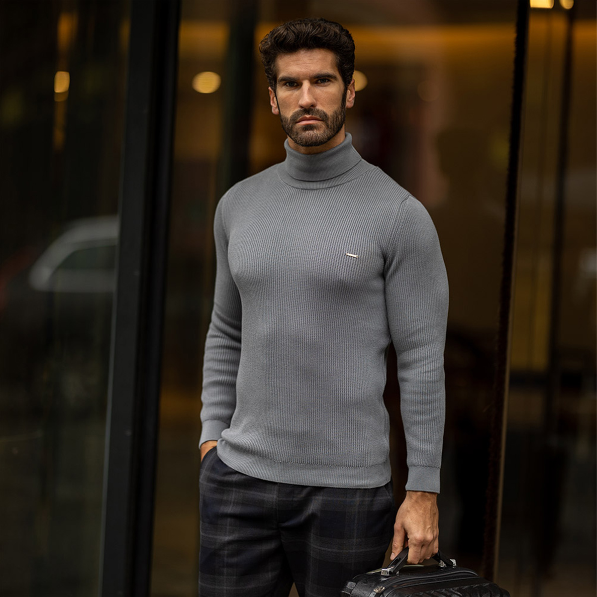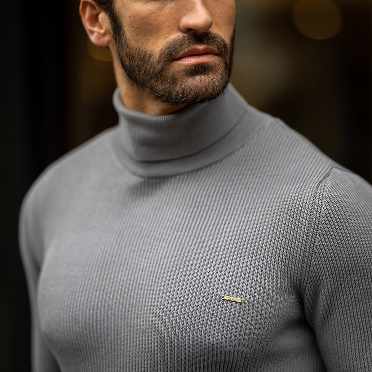 Um clássico reinventado para o homem contemporâneo. A camisola canelada cinza com gola alta da Zolf combina design minimalista com máximo conforto. Confeccionada em 100% algodão, oferece uma textura suave e respirável, perfeita para os dias frios sem comprometer o estilo.