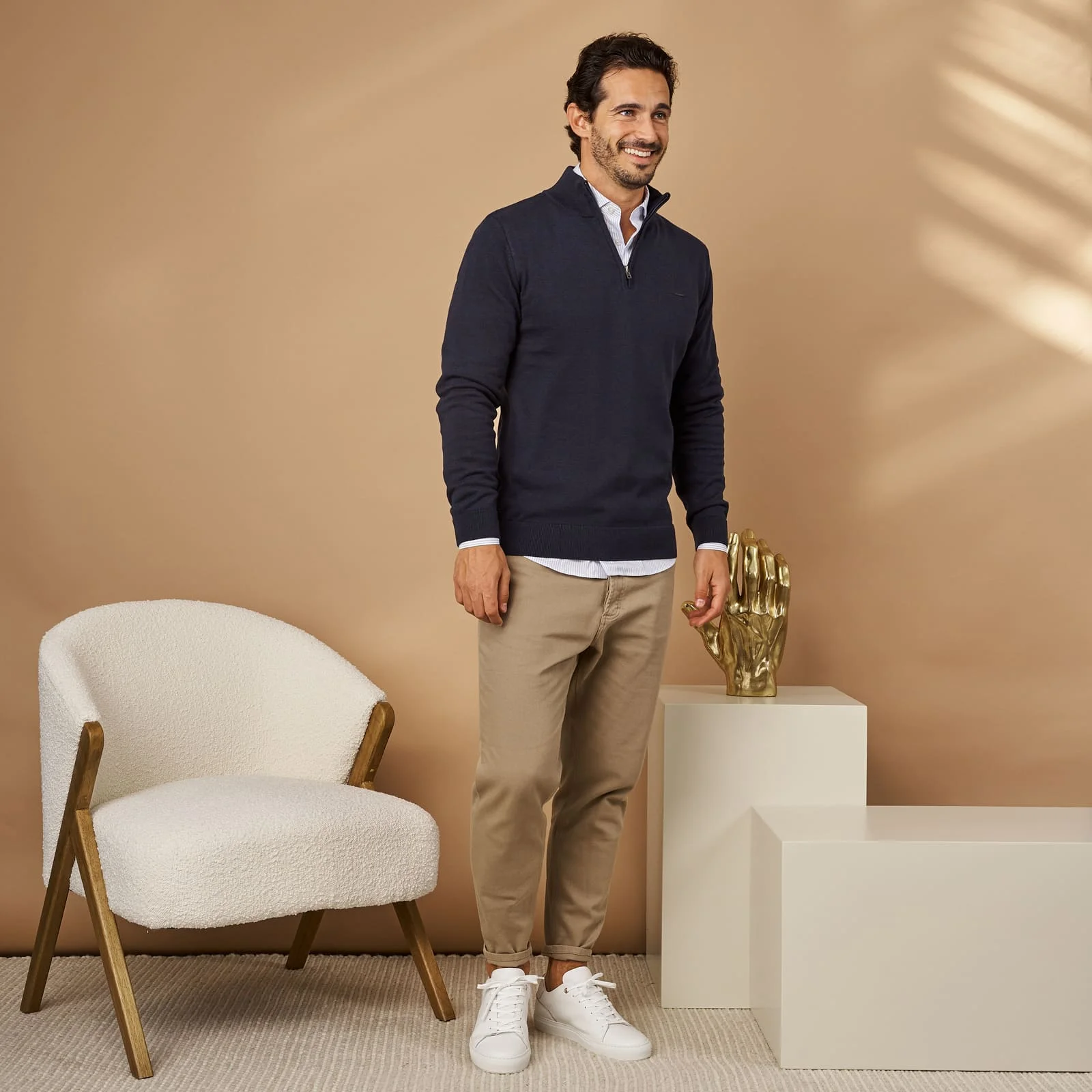 Perfeita para coordenar com jeans, calças de sarja ou fatos mais descontraídos, é uma peça indispensável no guarda-roupa masculino moderno.