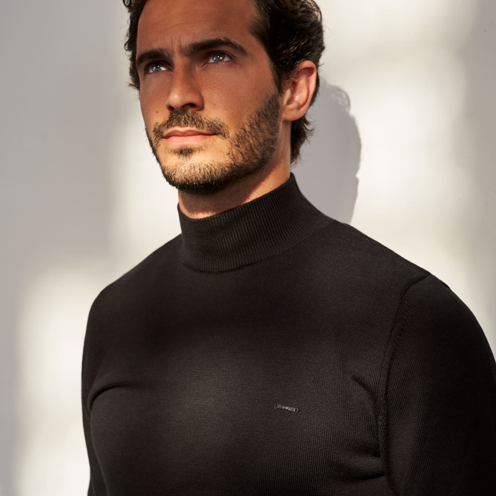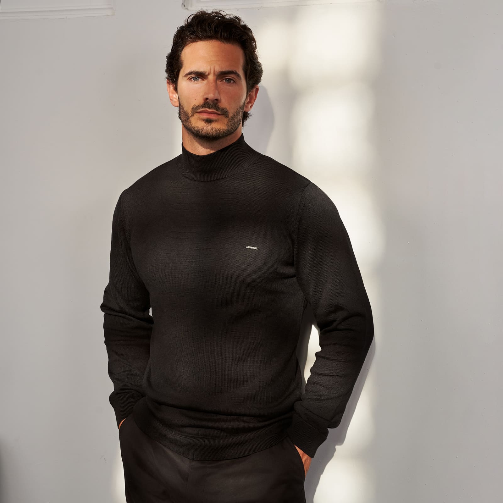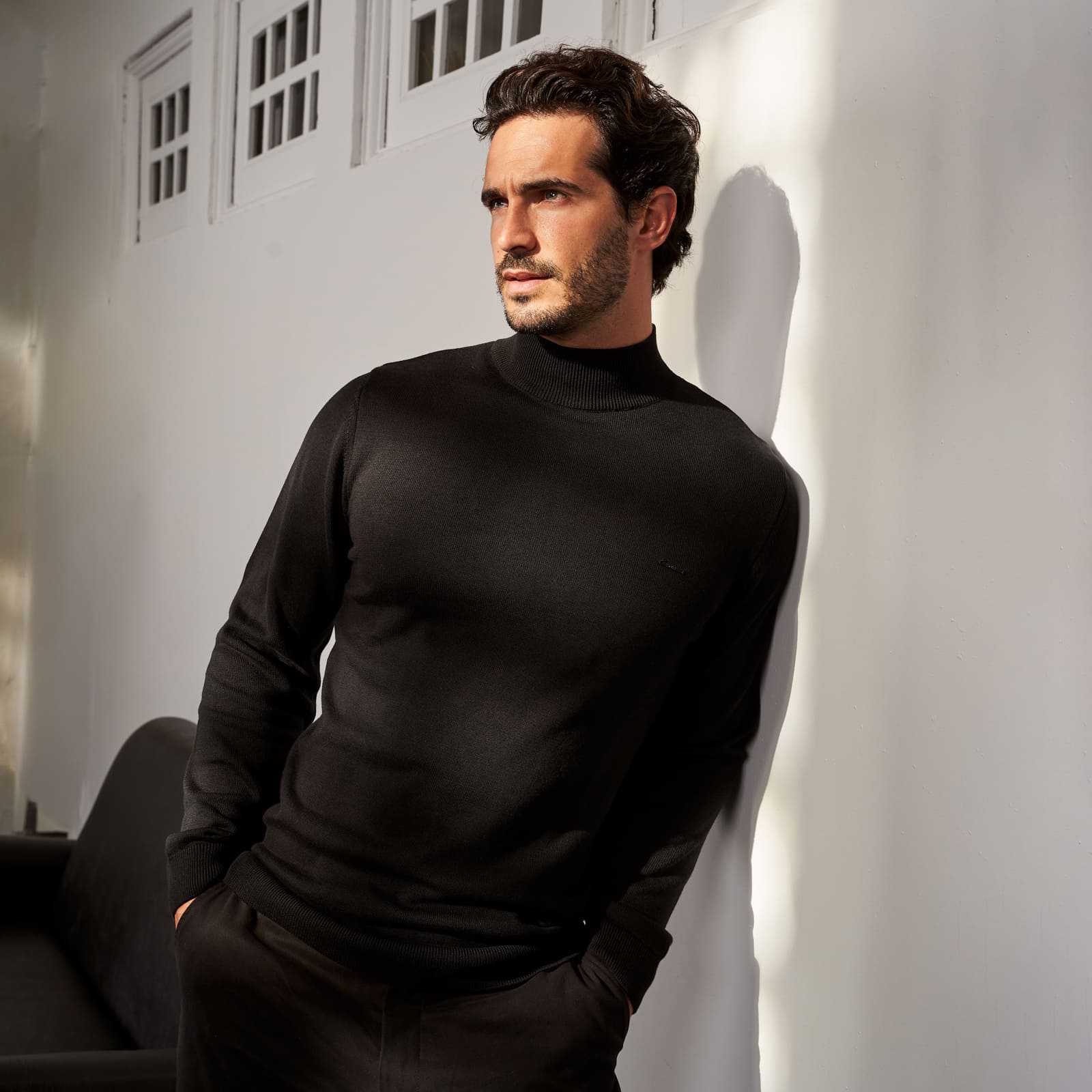 A camisola meia gola preta da Zolf é uma peça essencial para o guarda-roupa masculino, combinando conforto, elegância e versatilidade. Confeccionada em 67% liocel e 33% algodão, apresenta um toque macio e respirável, ideal para uso diário com máximo conforto.