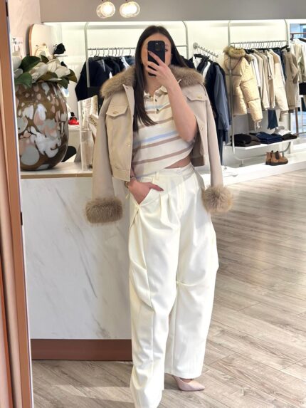 Uma peça versátil, intemporal e elegante, perfeita para conjugar com jeans, calças de alfaiataria, saias ou conjuntos mais sofisticados, adaptando-se facilmente tanto a looks casuais chic como a produções mais elegantes