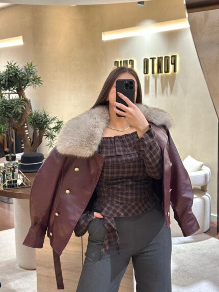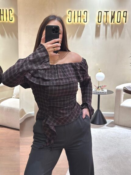 CAMISOLA CASTANHA COM PADRÃO XADREZ PONTO CHIC