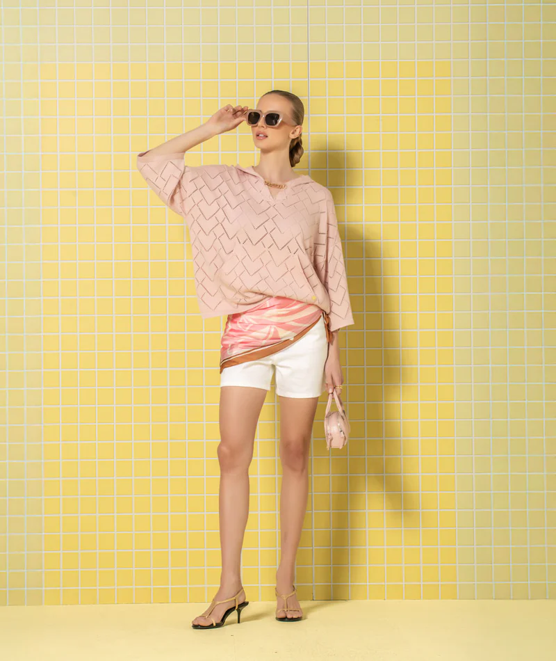 CAMISOLA ROSA COM CAPUZ EM MALHA RENDADA RUGA