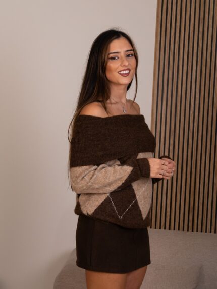 A camisola rosa e castanha de fecho Ponto Chic é a fusão perfeita entre conforto e estilo contemporâneo. Produzida em 50% viscose, 35% poliamida e 15% lã, destaca-se pela textura suave e pela sensação aconchegante que proporciona.