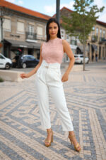 CAMISOLA ROSA TECIDO FLORES PONTO CHIC