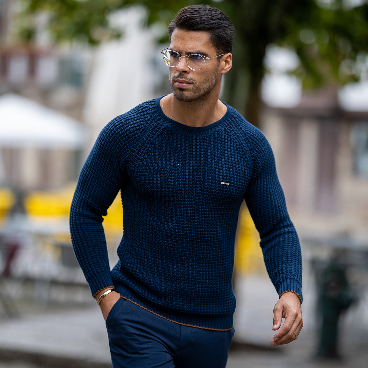A camisola tricot azul da Zolf combina conforto, qualidade e um estilo descontraído com um toque de sofisticação. Produzida em 100% algodão e fabricada em Portugal, apresenta uma malha grossa de textura suave e respirável, garantindo conforto térmico e bem-estar durante todo o dia.