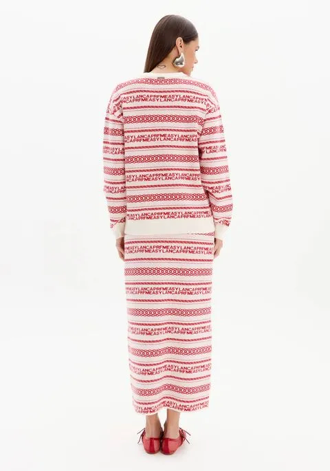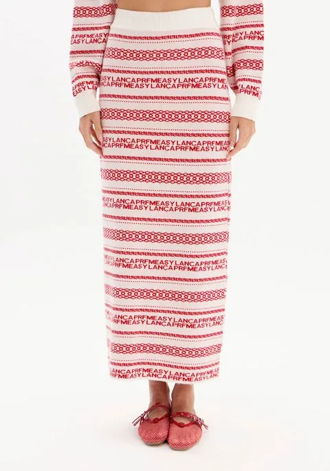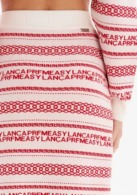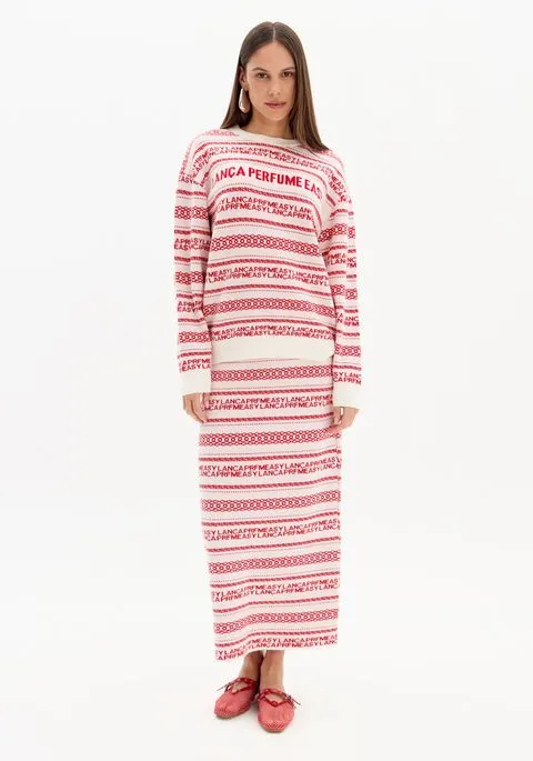 CAMISOLA TRICOT VERMELHA E BRANCA COM LOGO LANÇA PERFUME