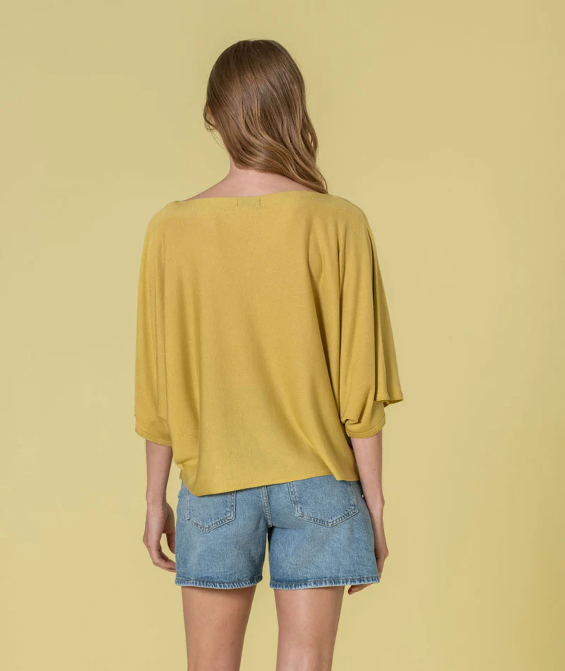 O design minimalista torna-a numa base perfeita para múltiplos looks: com ganga para um registo mais casual, com calças de alfaiataria para um visual mais polido, ou em sobreposição com camisas e blazers. O tom verde pistácio acrescenta frescura e luminosidade ao coordenado, sem perder a elegância.