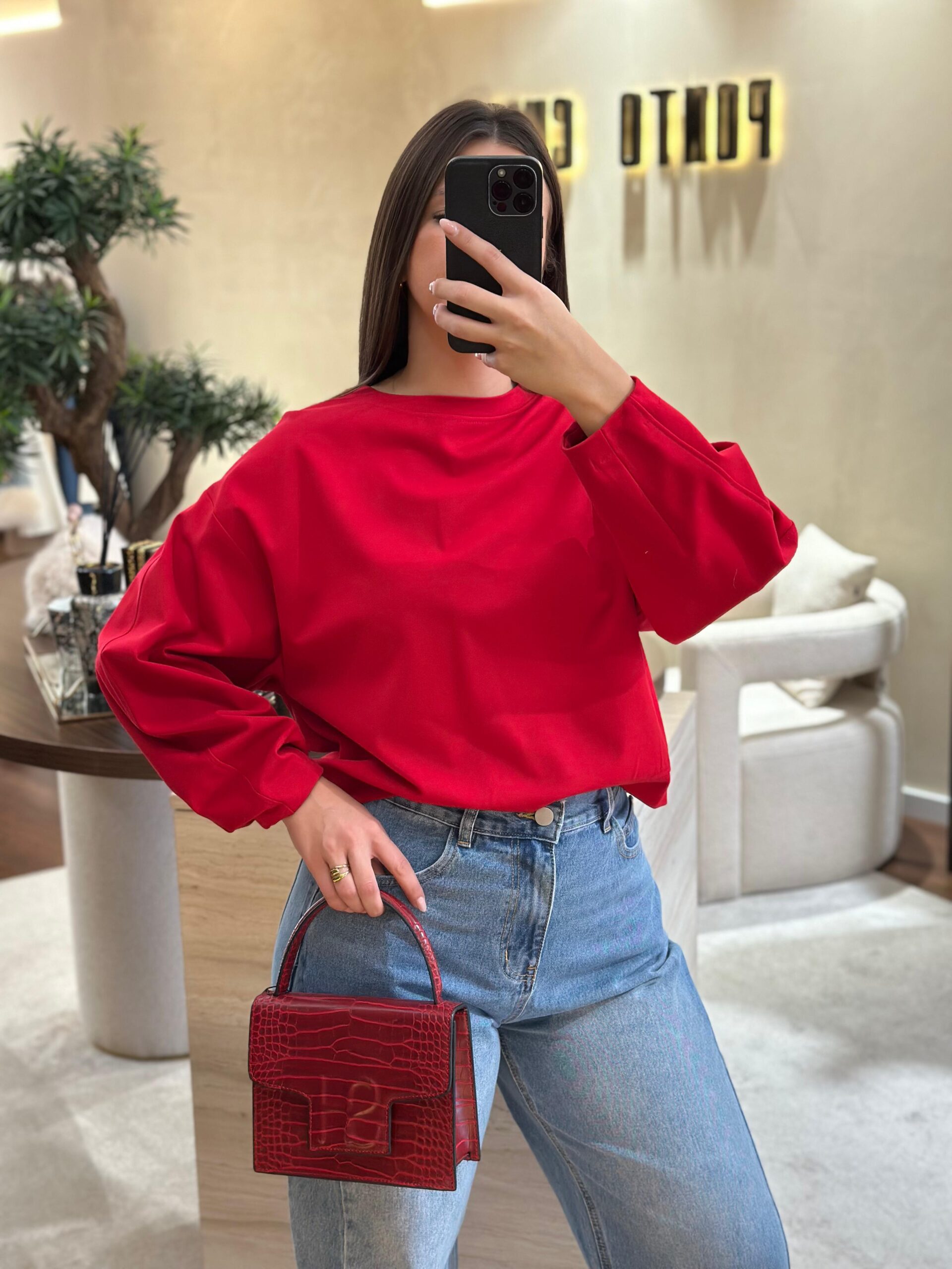 A camisola vermelha da marca Imperial é a escolha perfeita para acrescentar energia e estilo ao teu dia. Com um corte moderno e fluido, garante conforto e versatilidade, adaptando-se tanto a coordenados casuais como a looks mais urbanos e trendy.