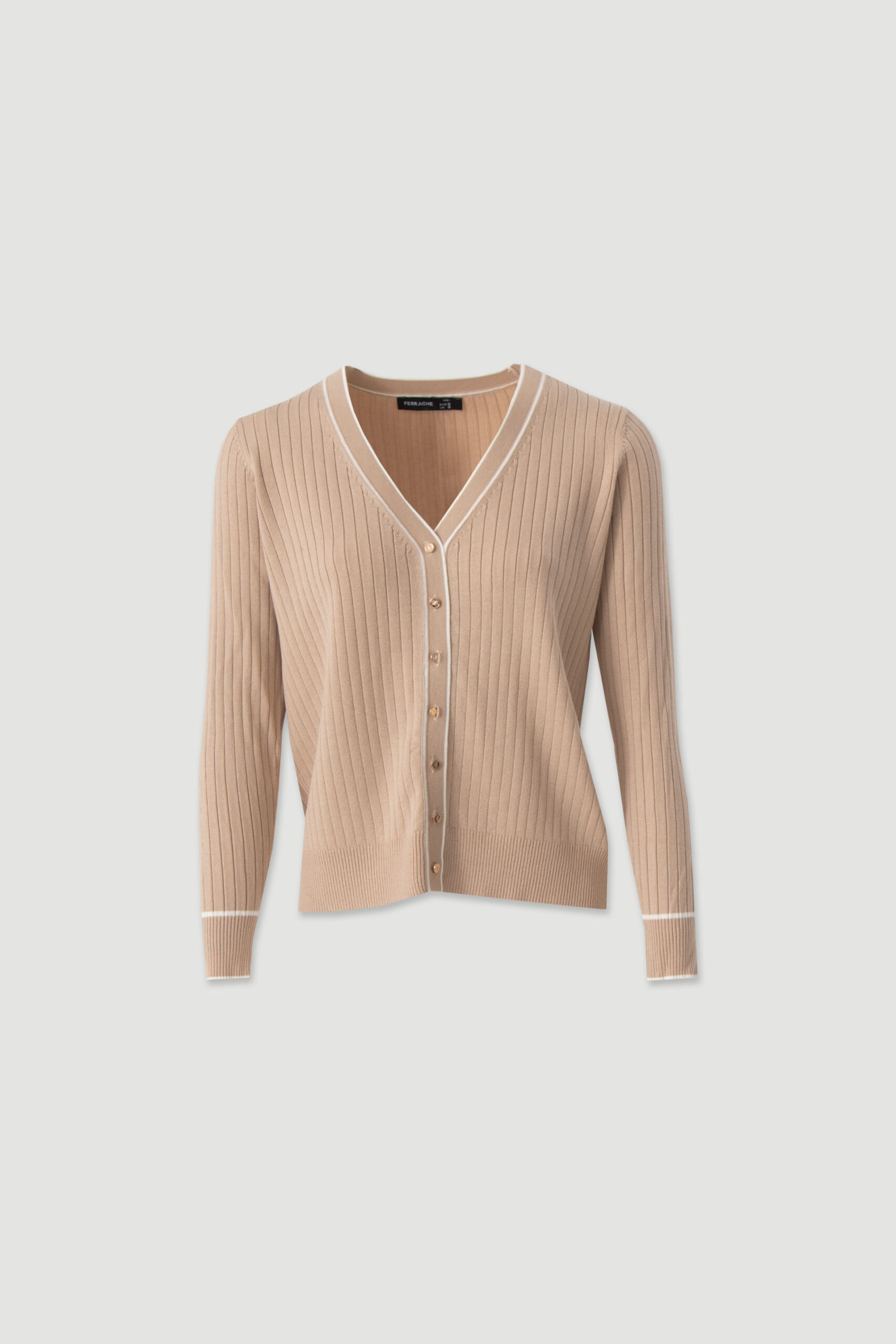 CARDIGAN DE MALHA BEGE CANELADA FERRACHE
