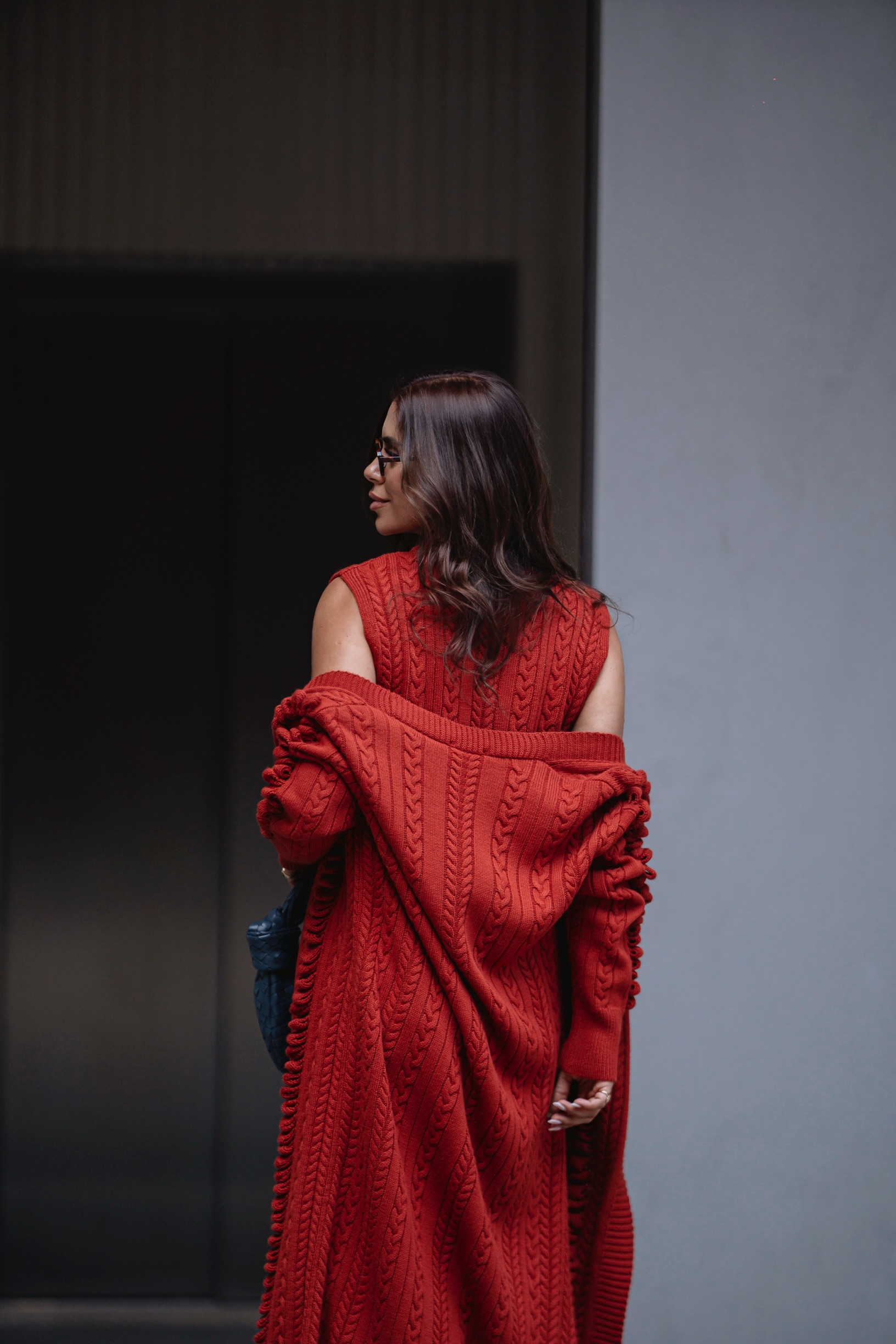 A construção em malha trabalhada, com detalhes verticais que alongam a silhueta, cria um visual sofisticado e confortável. Sem fecho, o modelo oferece liberdade de movimento e permite sobreposições elegantes, adaptando-se facilmente tanto a looks casuais como a propostas mais arrumadas.