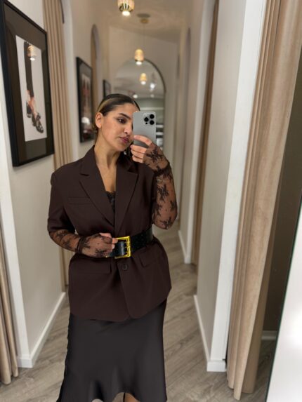 CASACA COM FECHO METÁLICO NA FRENTE. COM RECORTES DE FLORES NA MANGAS. BOLSO VIVO NA FRENTE. 100% PELE
