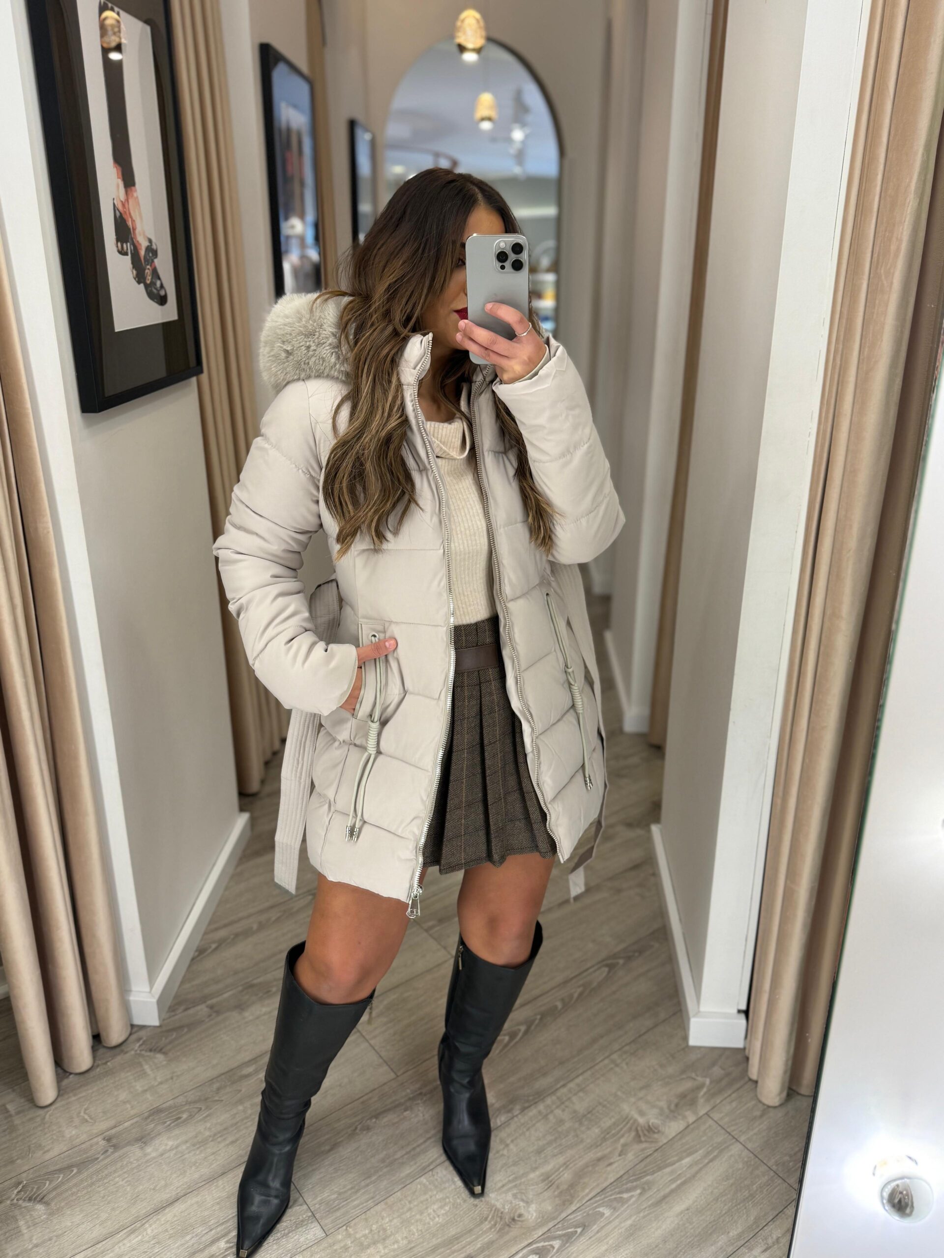 CASACO ACOLCHOADO BEGE COM PELO PONTO CHIC