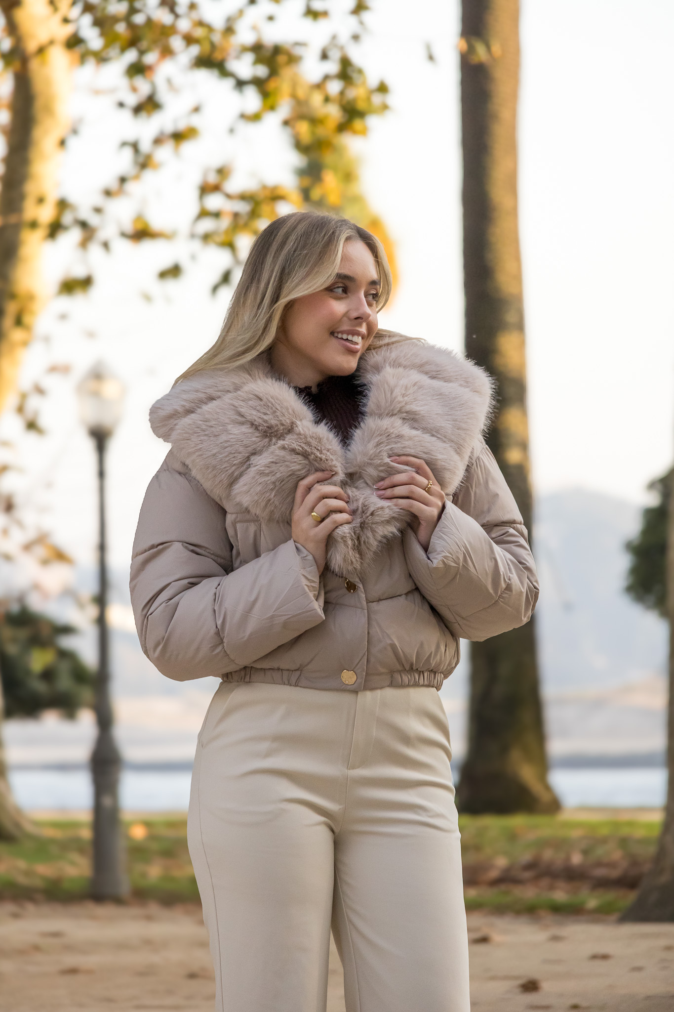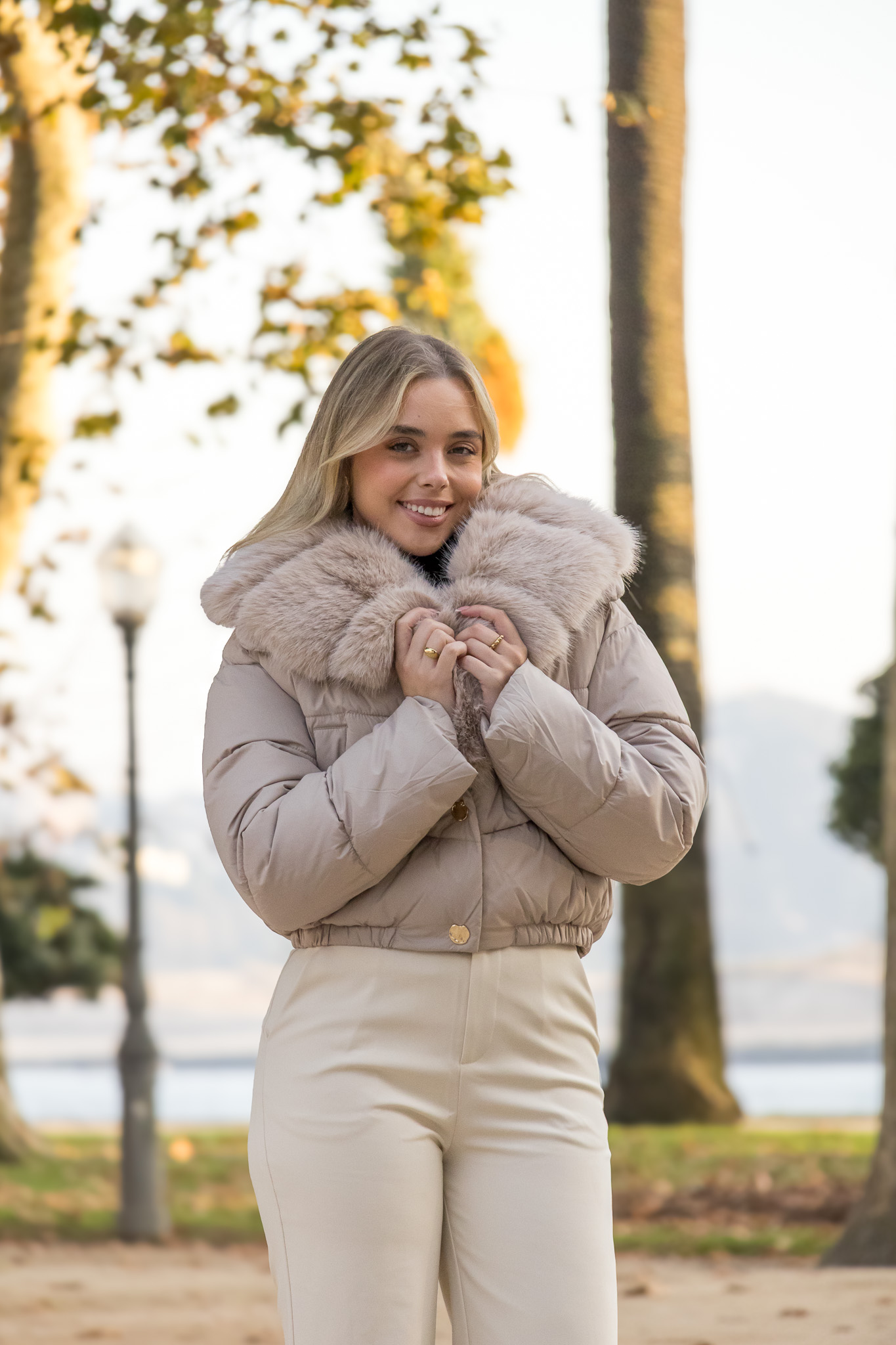 CASACO ACOLCHOADO BEGE COM PELO PONTO CHIC