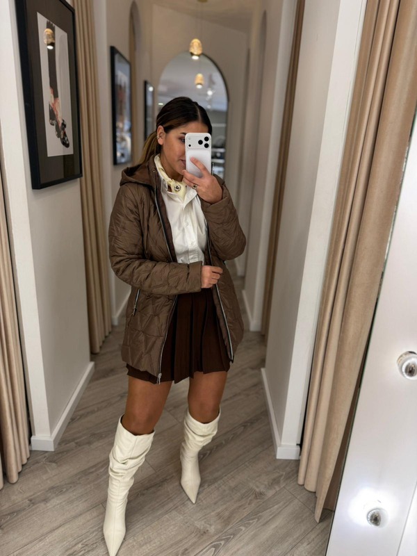CASACO ACOLCHOADO CASTANHO COM CAPUZ PONTO CHIC