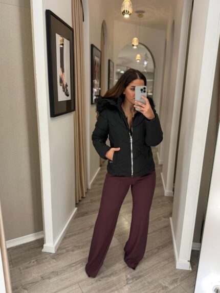 A gola com pelo amovível acrescenta um toque de sofisticação e versatilidade — podes usar com ou sem pelo consoante o look ou a temperatura. O enchimento acolchoado proporciona um aquecimento confortável, ideal para o inverno, e os bolsos laterais tornam a peça ainda mais prática para o dia a dia.