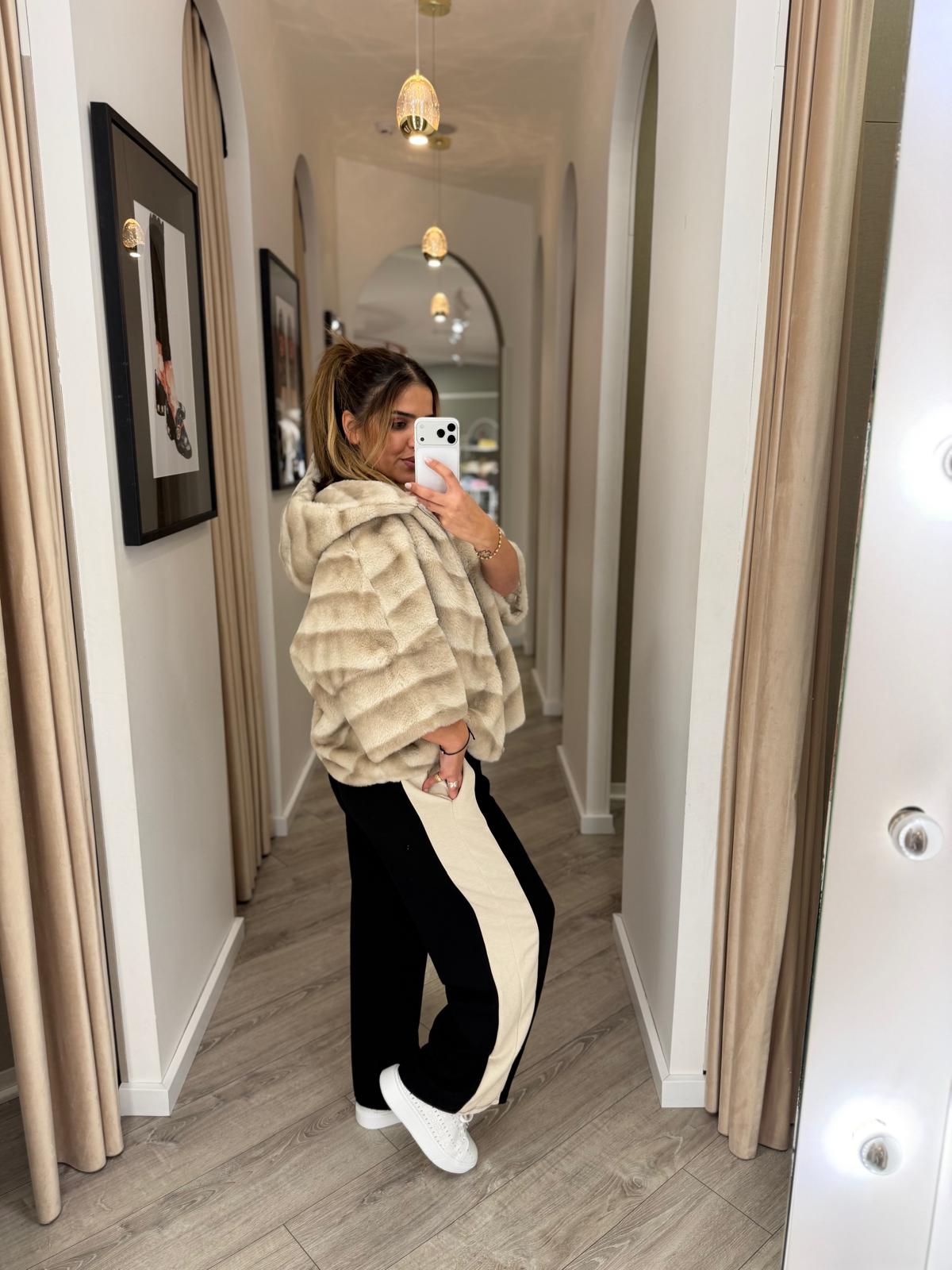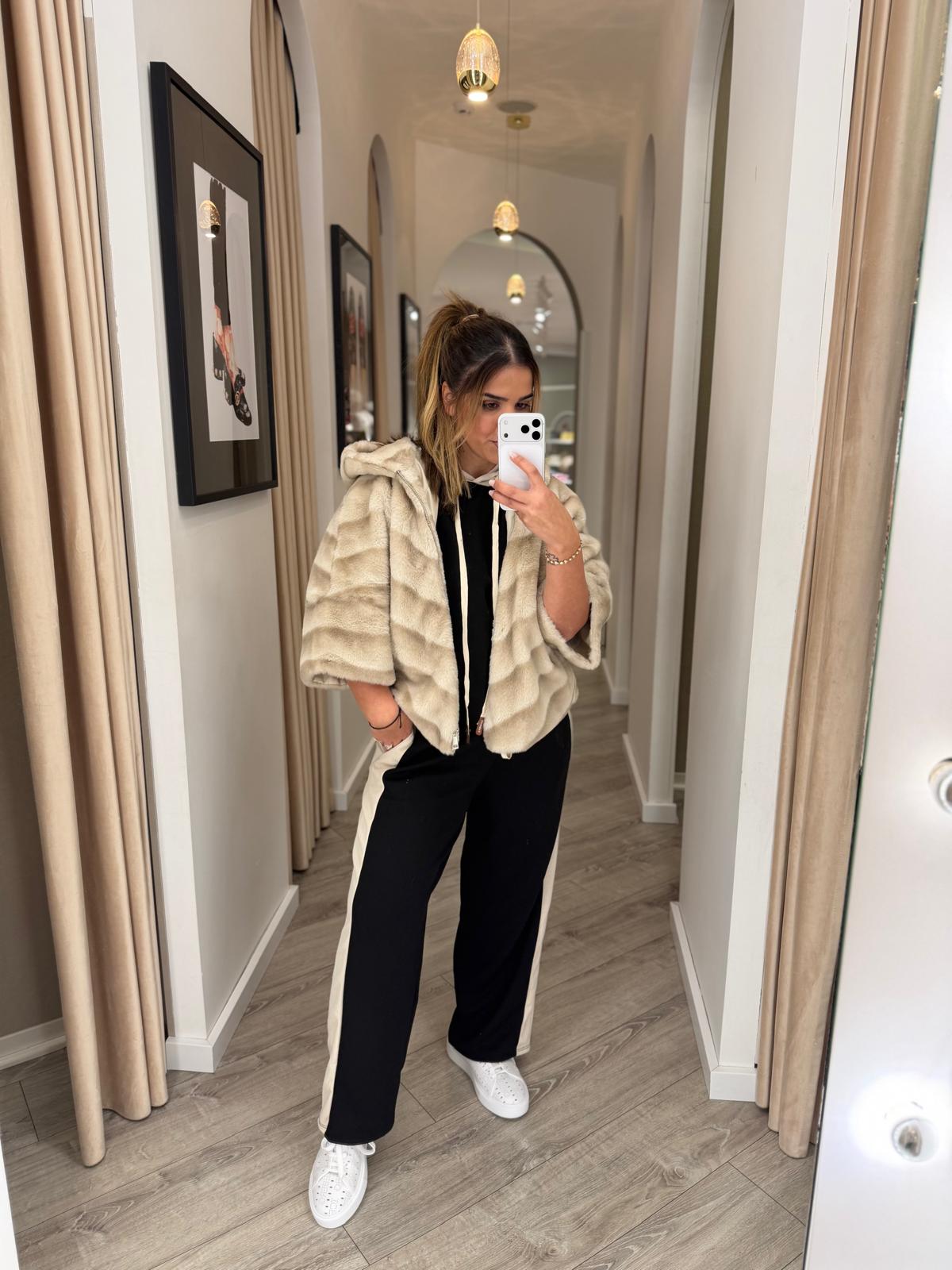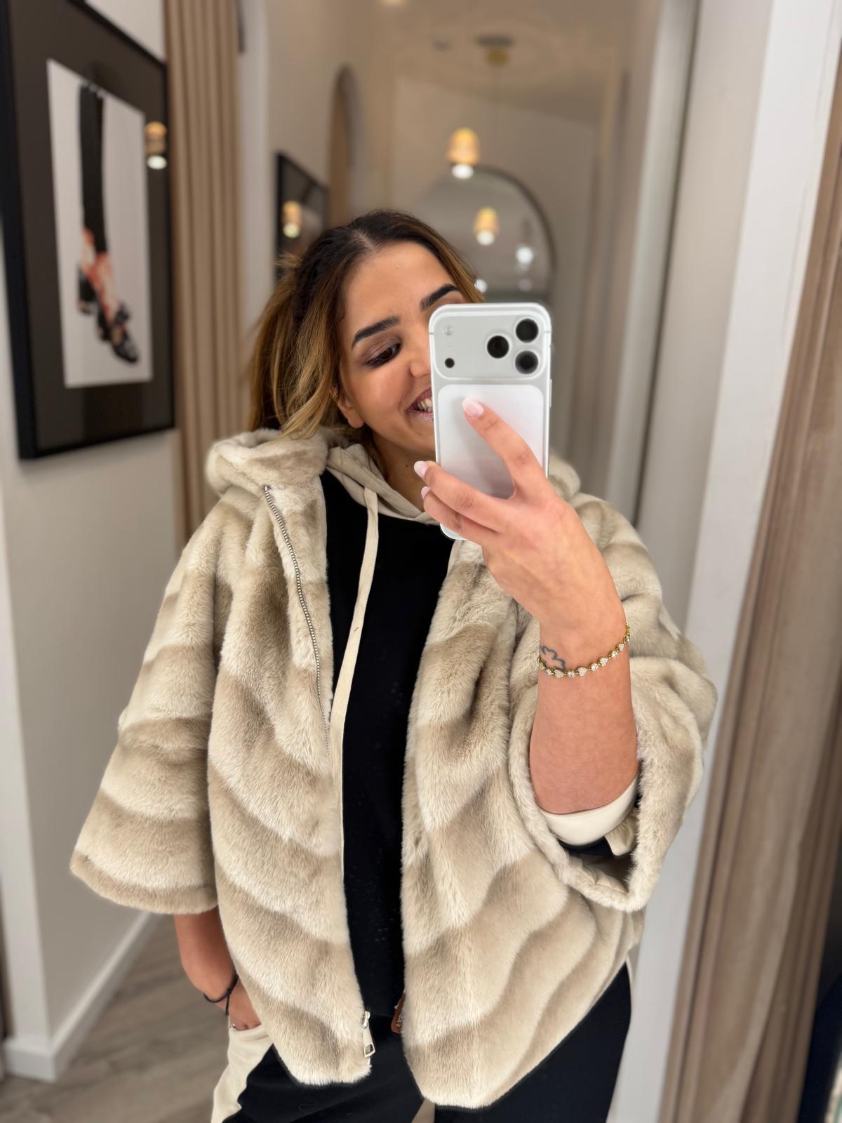 CASACO BEGE EM PÊLO COM FECHO