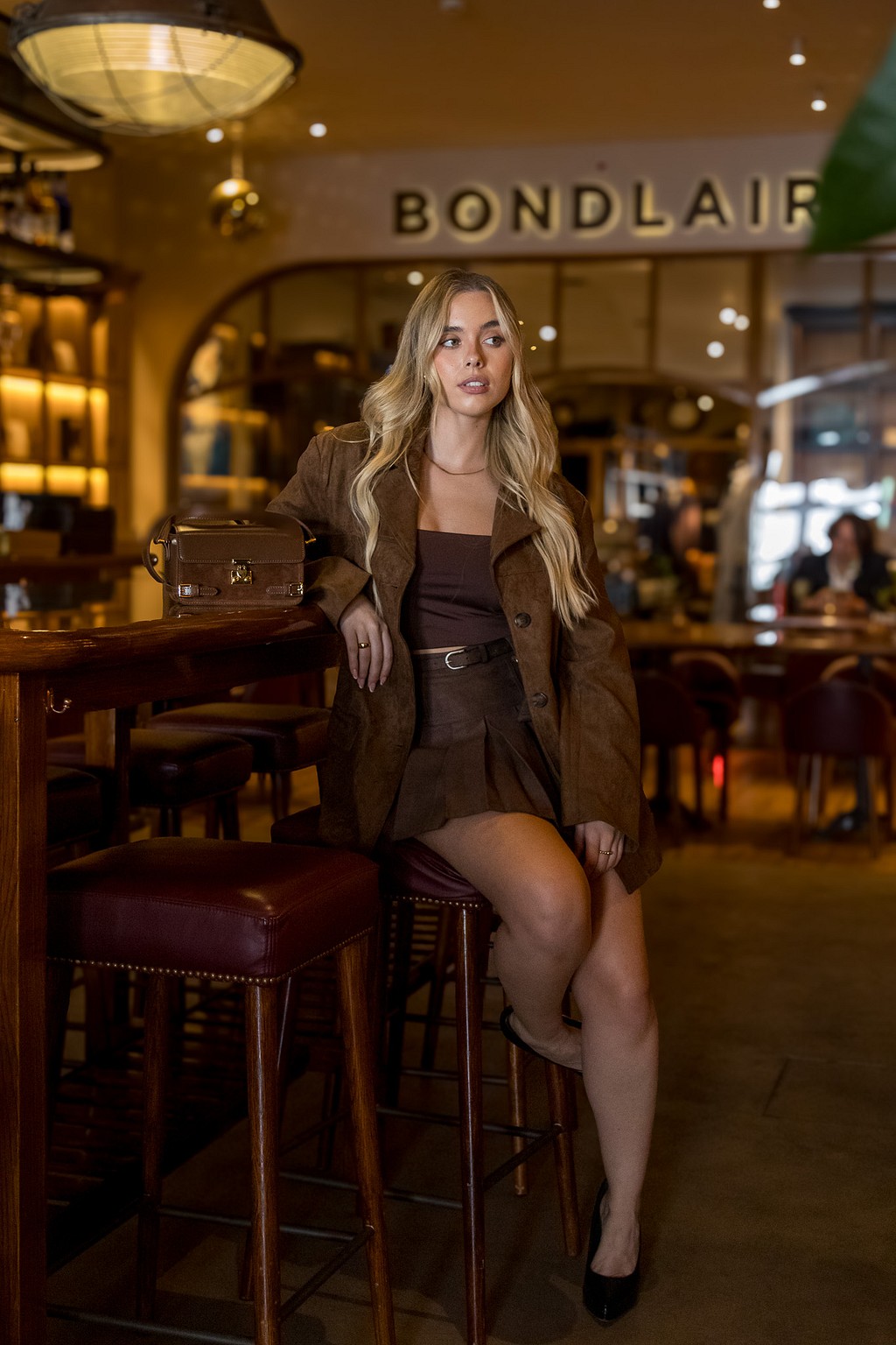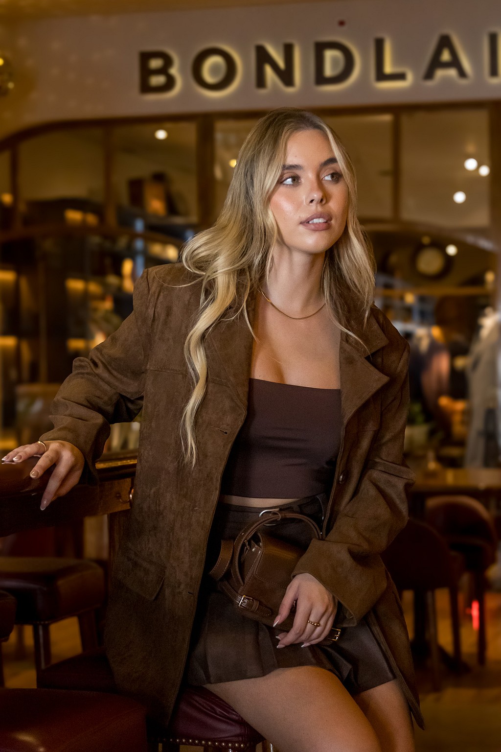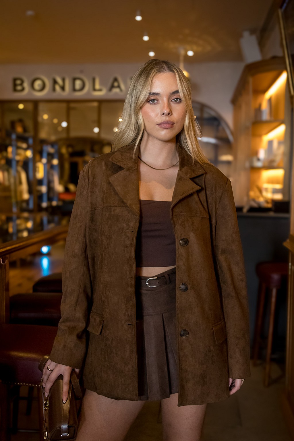 CASACO BLAZER EM CAMURÇA CASTANHO PONTO CHIC