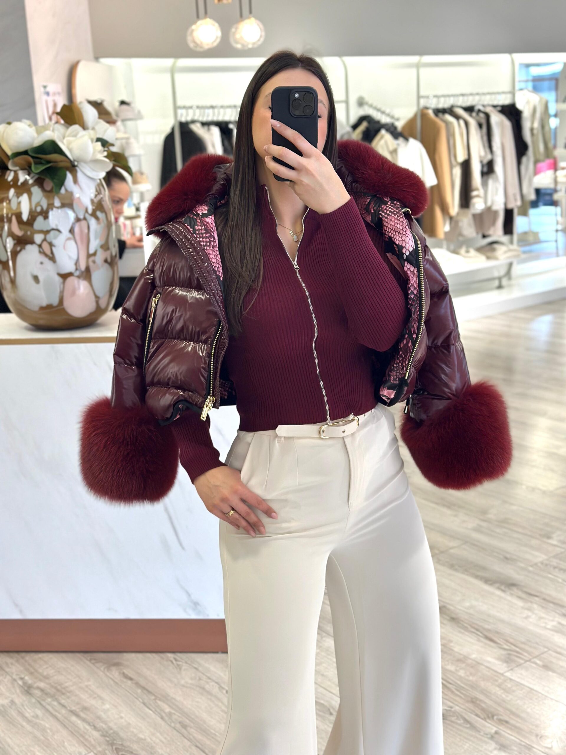 Com textura canelada em toda a peça, este casaco apresenta gola clássica e corte estruturado, que valorizam a silhueta com modernidade. A cor bordô acrescenta intensidade e personalidade, tornando a peça única e cheia de atitude.