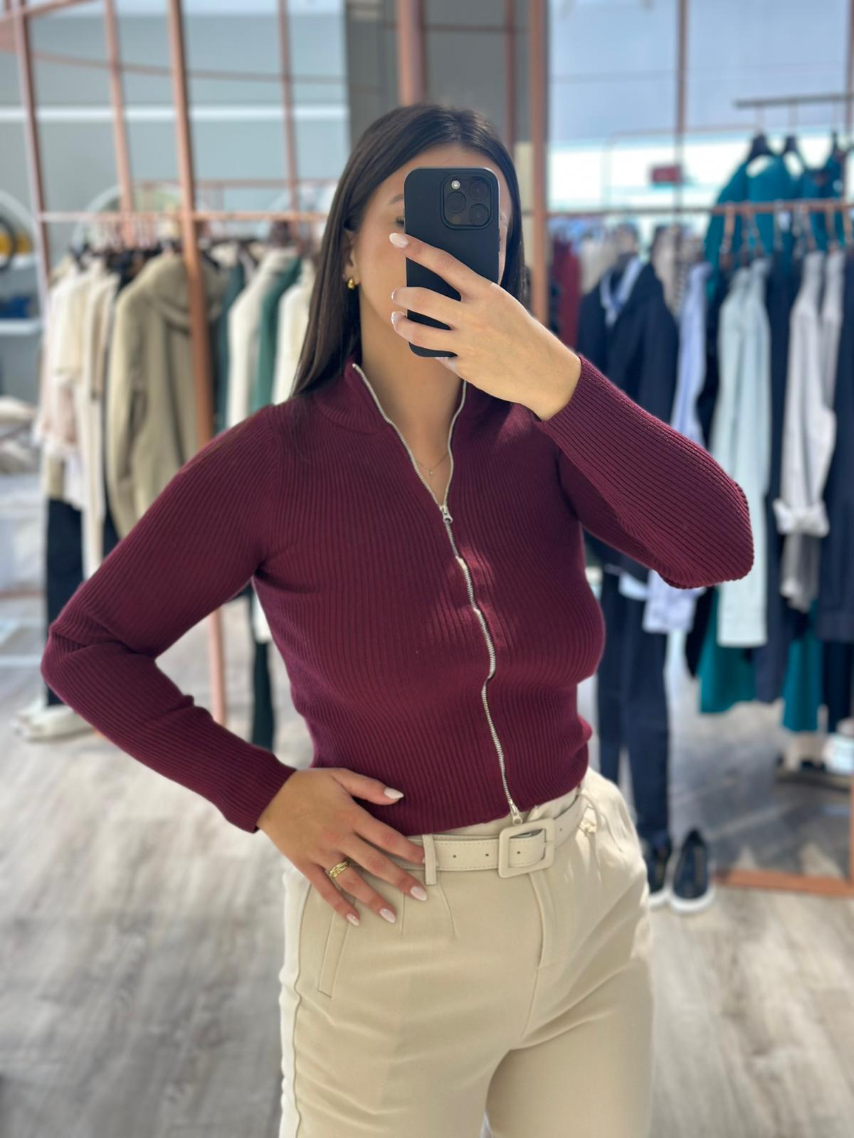 CASACO BORDÔ CANELADO PONTO CHIC