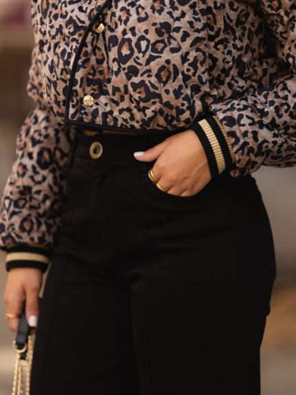 O casaco camel da Miss You é a definição de elegância urbana com atitude contemporânea. Produzido em 100% poliuretano, apresenta o aspeto luxuoso da pele verdadeira com toque suave e estrutura firme, garantindo conforto e durabilidade. O interior revela um forro em 100% viscose com padrão animal print, um detalhe inesperado que traduz o ADN ousado e sofisticado da marca.