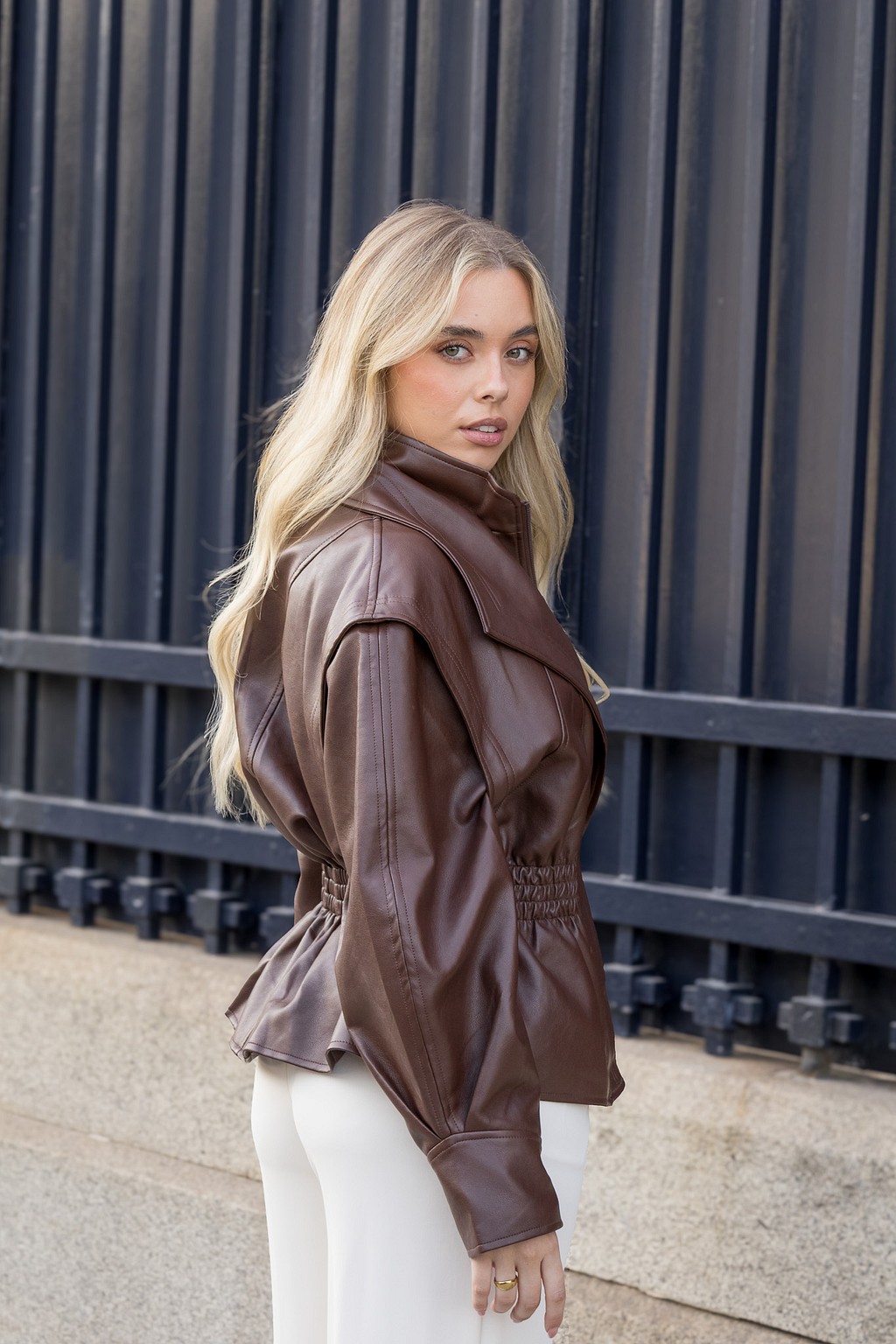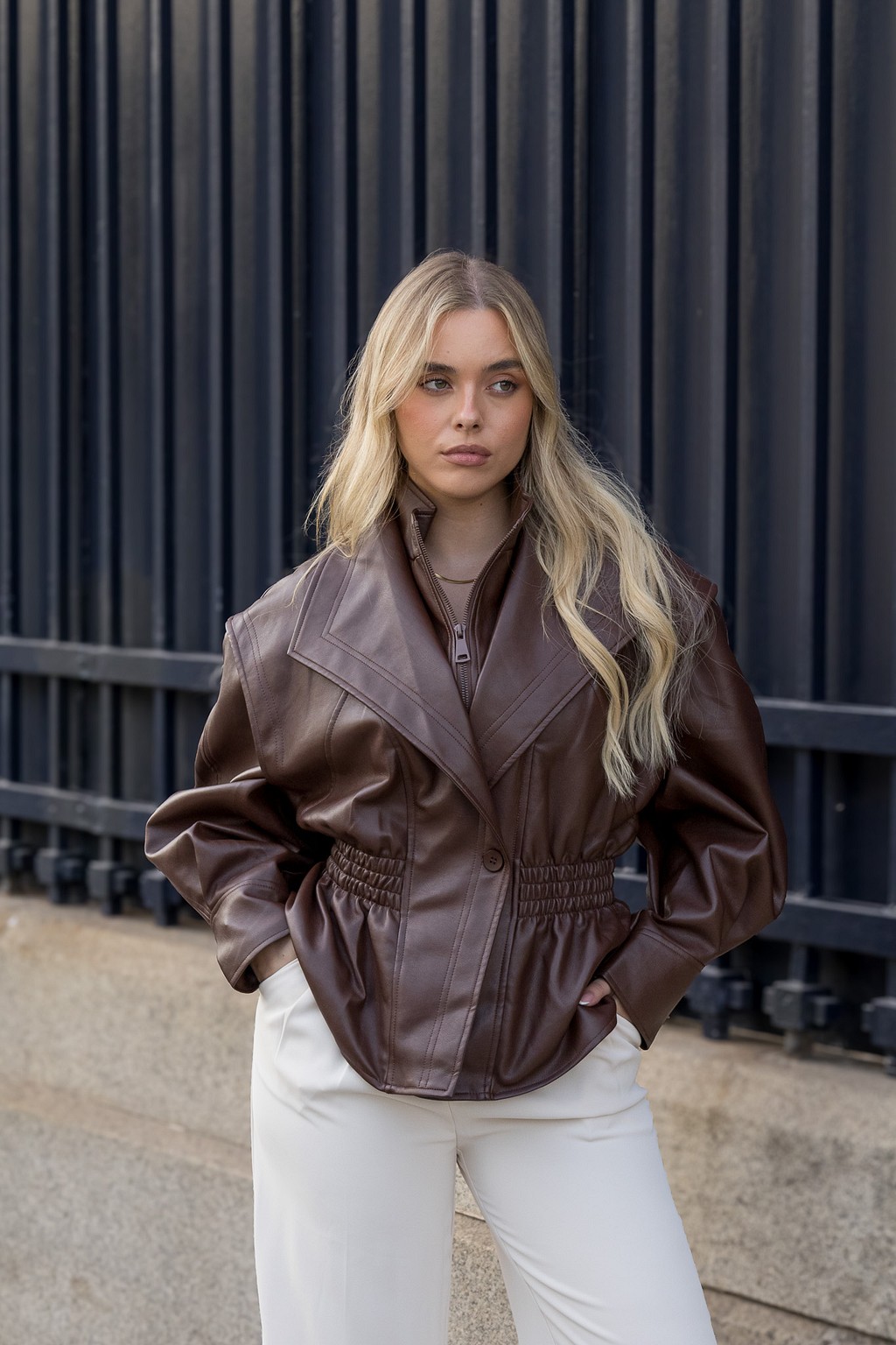 Perfeito para os dias frios, o casaco castanho Ponto Chic adapta-se a diferentes ocasiões — desde coordenados elegantes com botas e vestidos até looks mais casuais com calças e malhas — elevando sempre o teu visual com elegância e atitude.