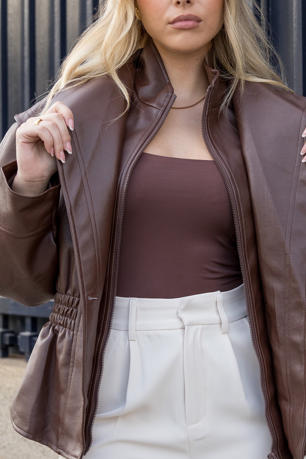 CASACO CASTANHO ACINTURADO PONTO CHIC