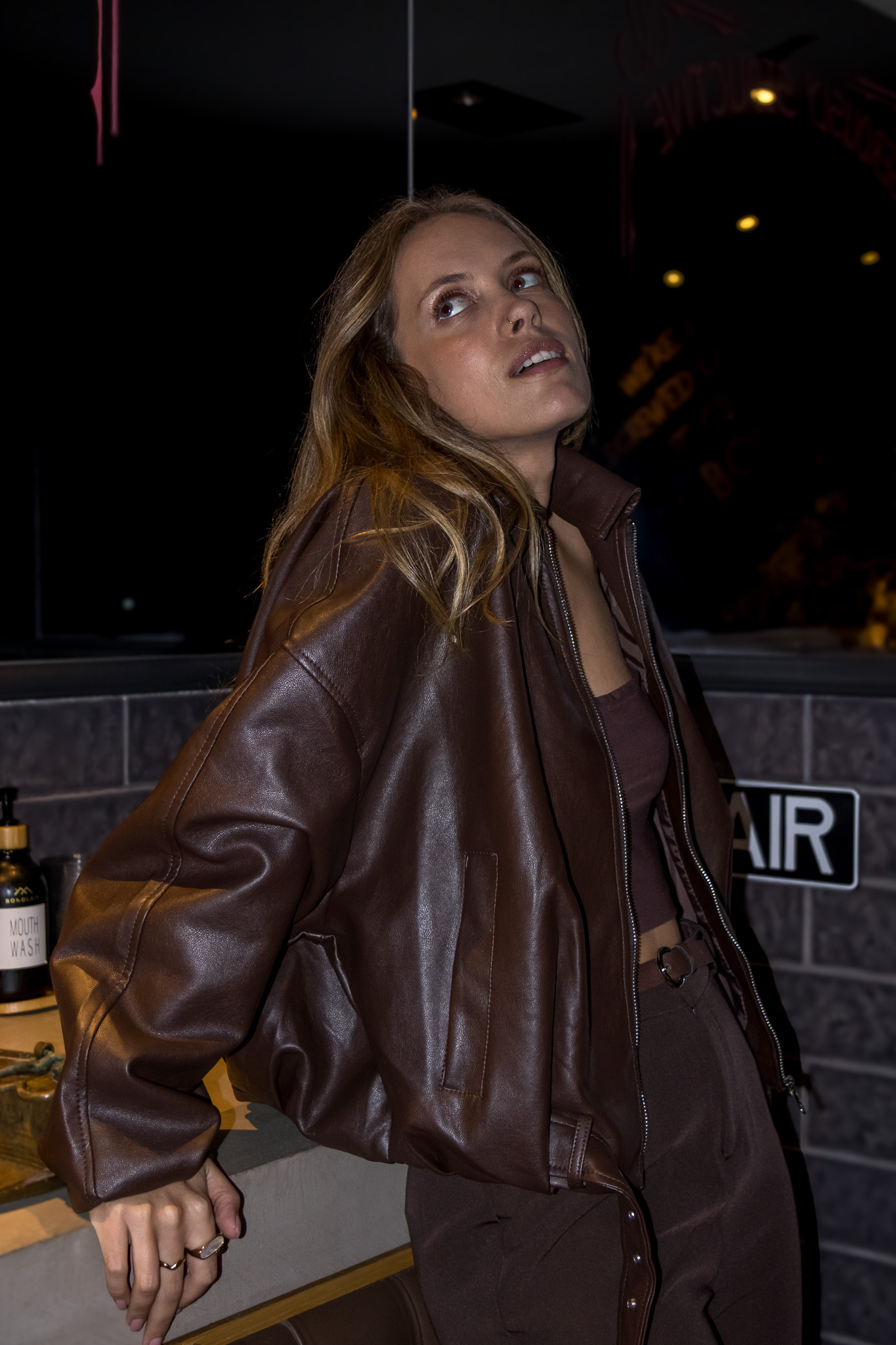 CASACO CASTANHO EM EFEITO PELE