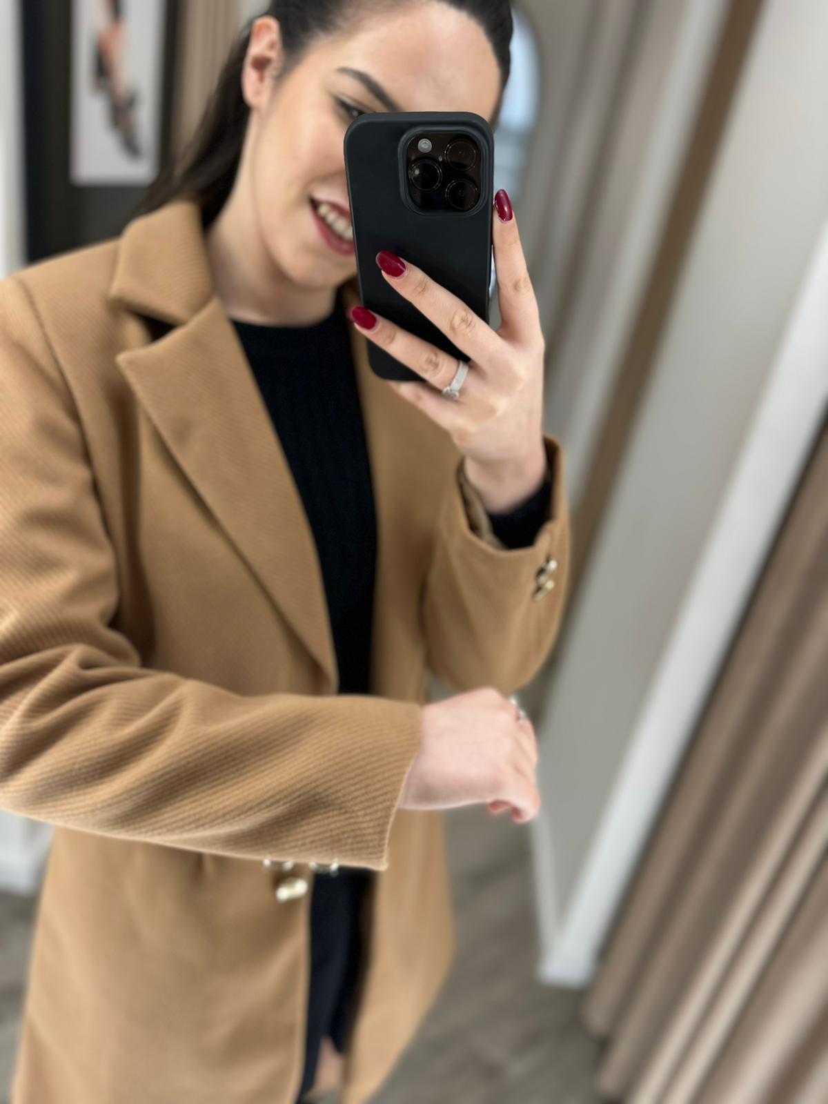 Uma peça essencial de guarda-roupa, este casaco camel Ponto Chic adapta-se a diferentes estilos e ocasiões, funcionando perfeitamente sobre vestidos, malhas ou coordenados de alfaiataria.