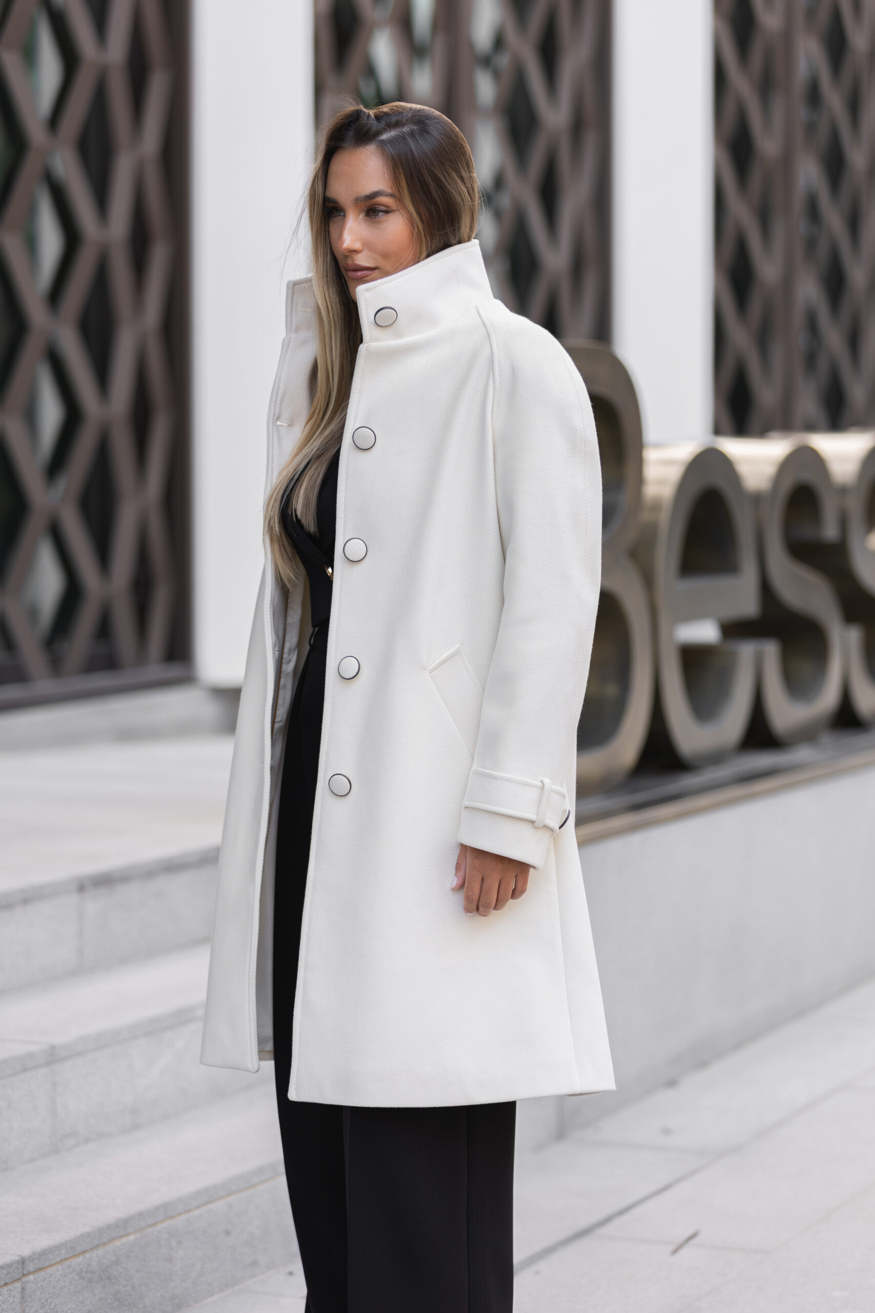 Perfeito para coordenar com tons neutros, camel ou preto, este casaco é um essencial de outono-inverno que transmite leveza, elegância e versatilidade — assinatura refinada da Miss You.