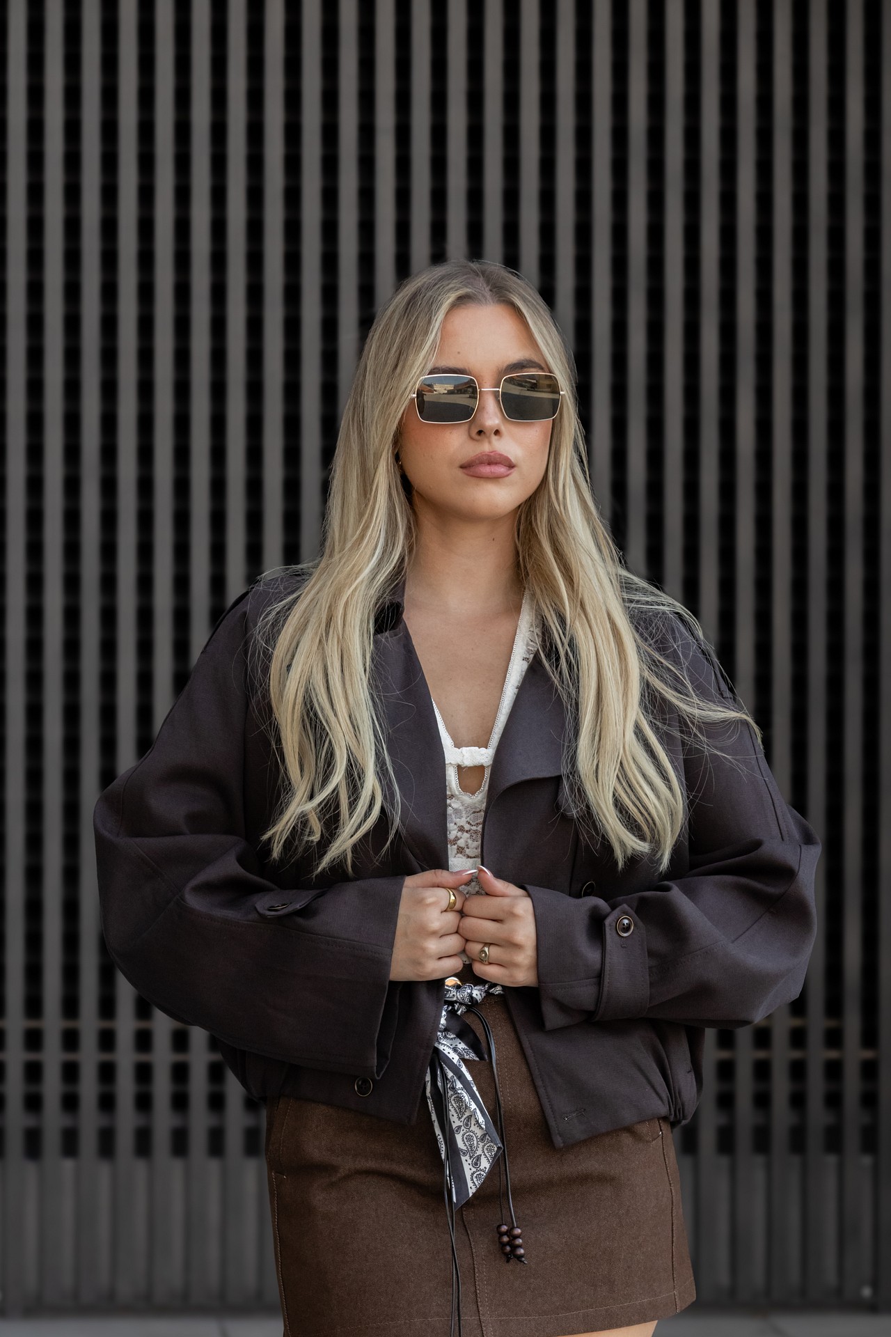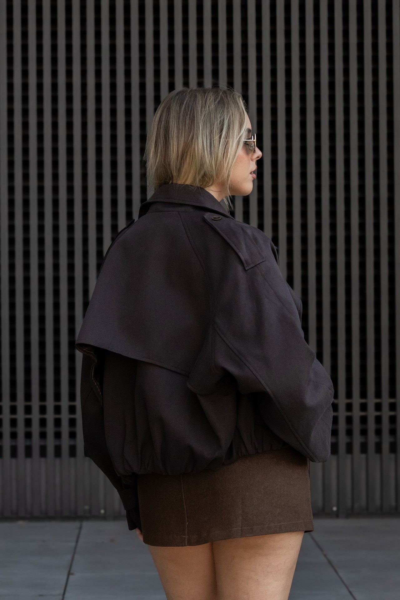 O design inspirado no estilo militar apresenta lapelas estruturadas, bolsos práticos, botões decorativos e detalhes nos ombros, que reforçam a sua identidade sofisticada. O corte curto e ligeiramente ajustado na base proporciona um toque atual e fácil de conjugar com diferentes coordenados.