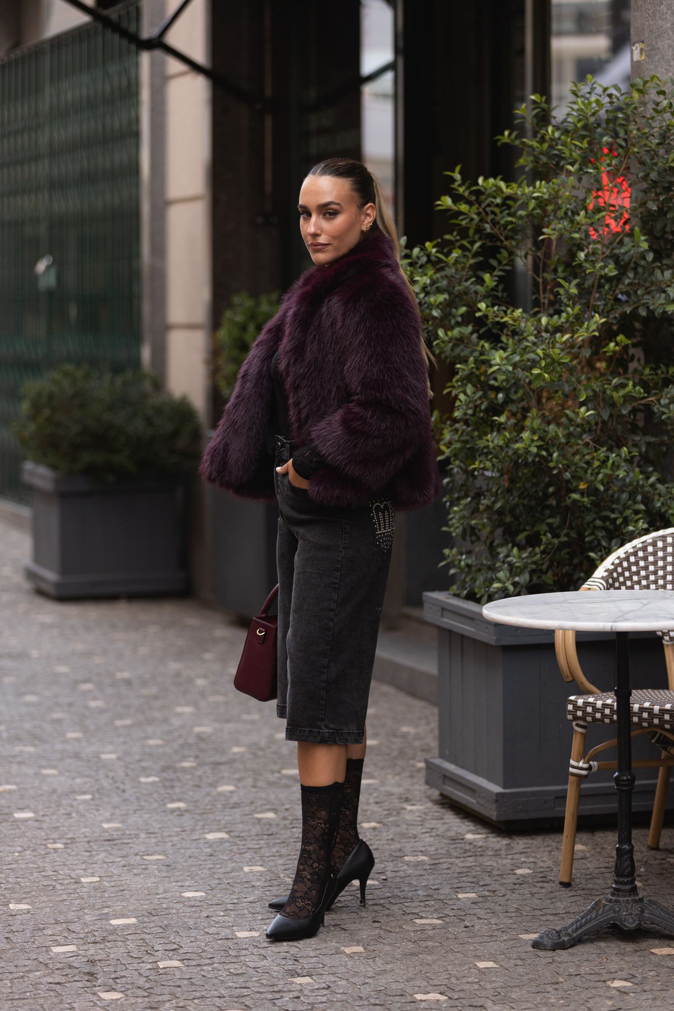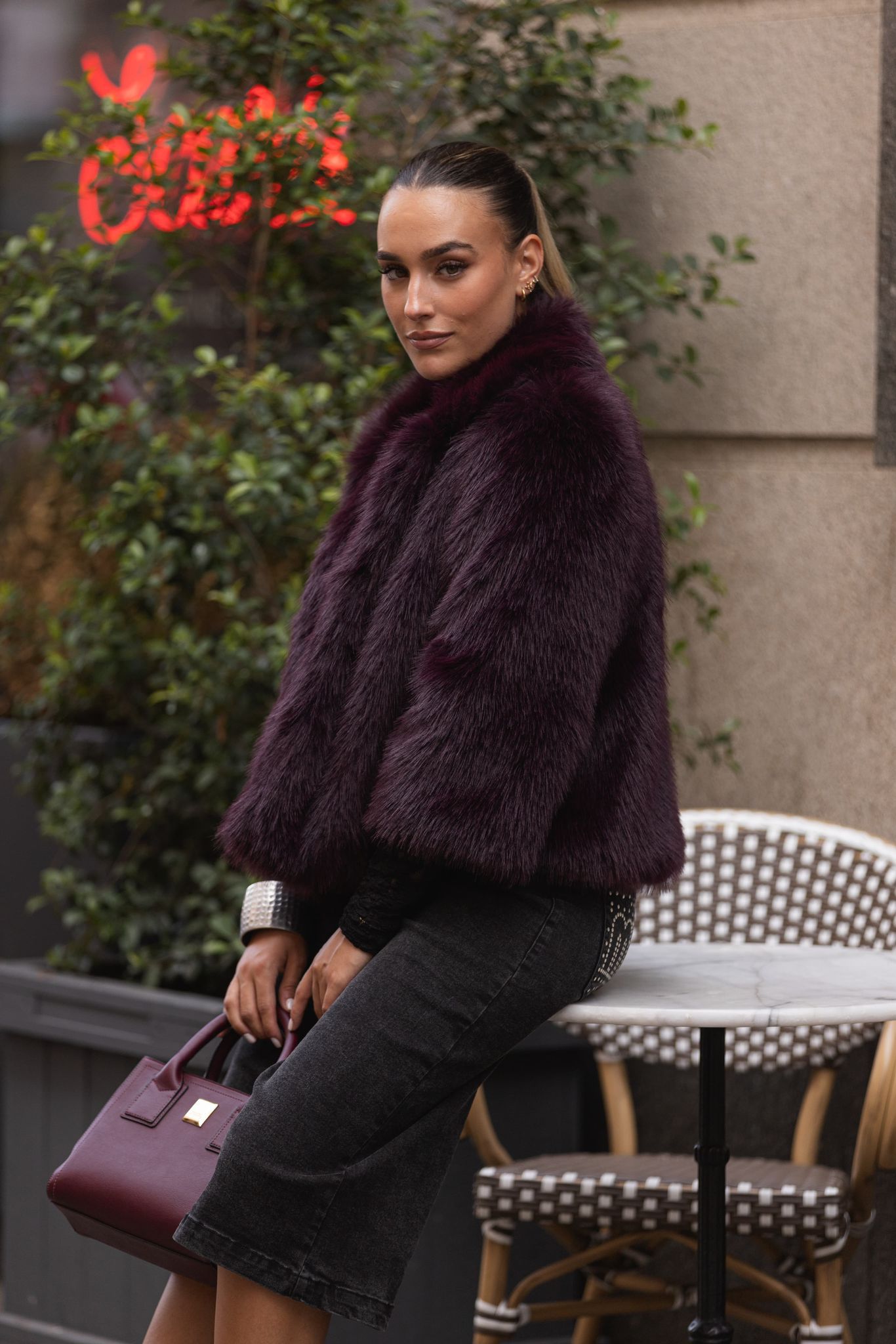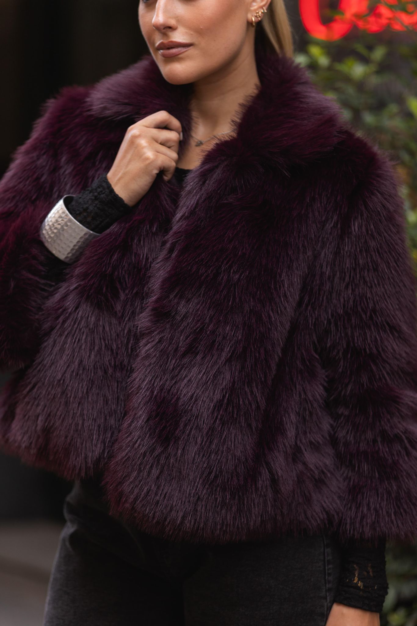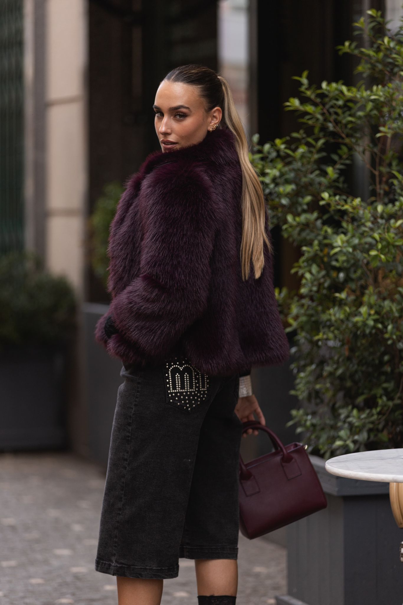 O casaco de pêlo sintético bordeaux da marca Miss You é a peça perfeita para looks de inverno sofisticados e modernos. O design volumoso confere um ar luxuoso, enquanto a cor intensa acrescenta personalidade e elegância.
