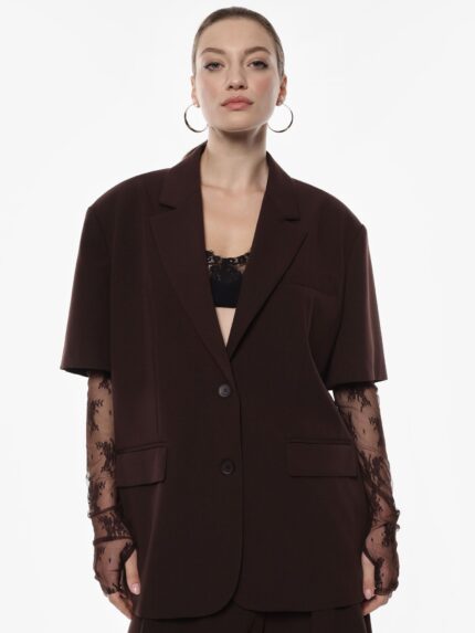 BLAZER CASTANHO COM MANGAS DE RENDA IMPERIAL
