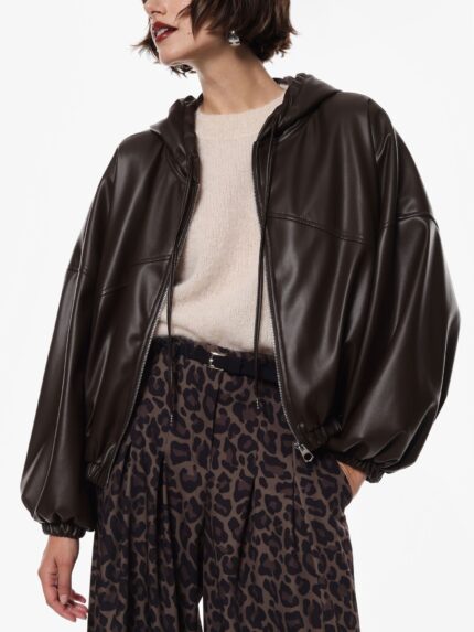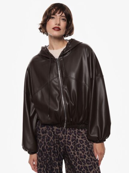 CASACO CASTANHO EM ECOPELE COM CAPUZ IMPERIAL